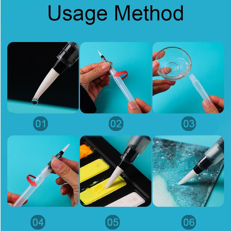 6Pcs/set Watercolor Painting Brush Pen Set Calligraphy Painting Tool Portable Paint Refillable Ink Pen Art Marker