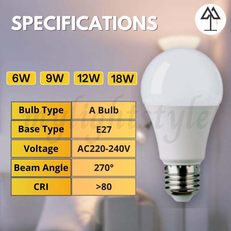 6W 9W 12W 18W HIGH QUALITY LED BULB E27 MENTOL LAMPU TABLE LAMP MEJA GATE PAGAR LAMPU SILING DOWNLIGHT CEILING LIGHT