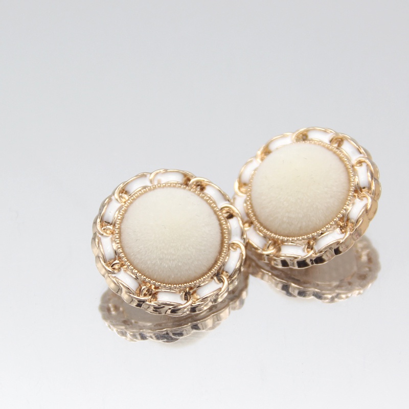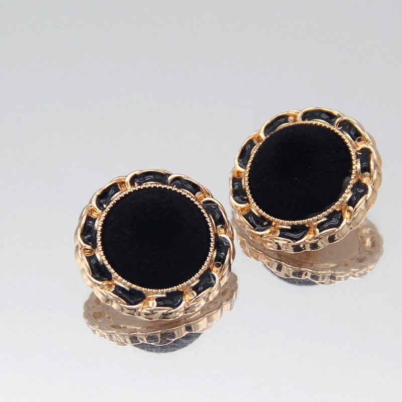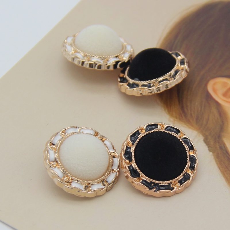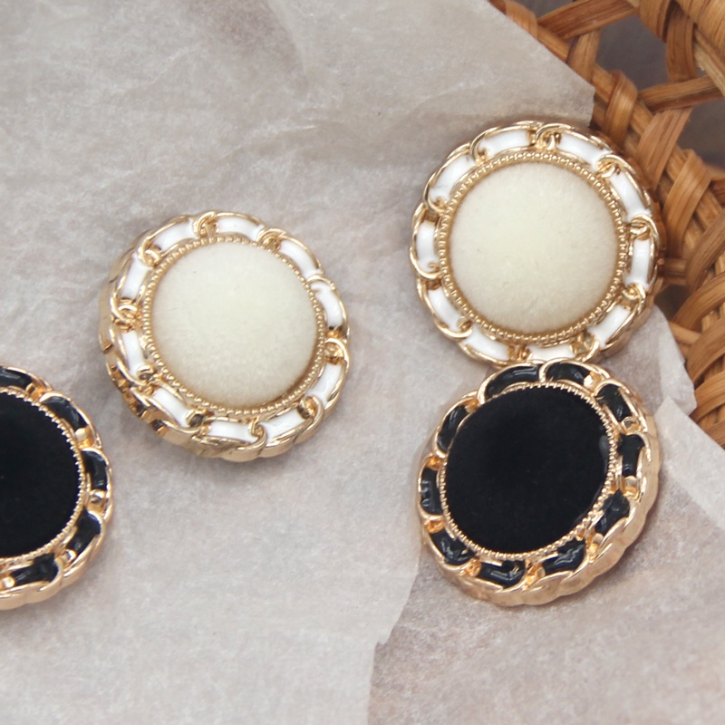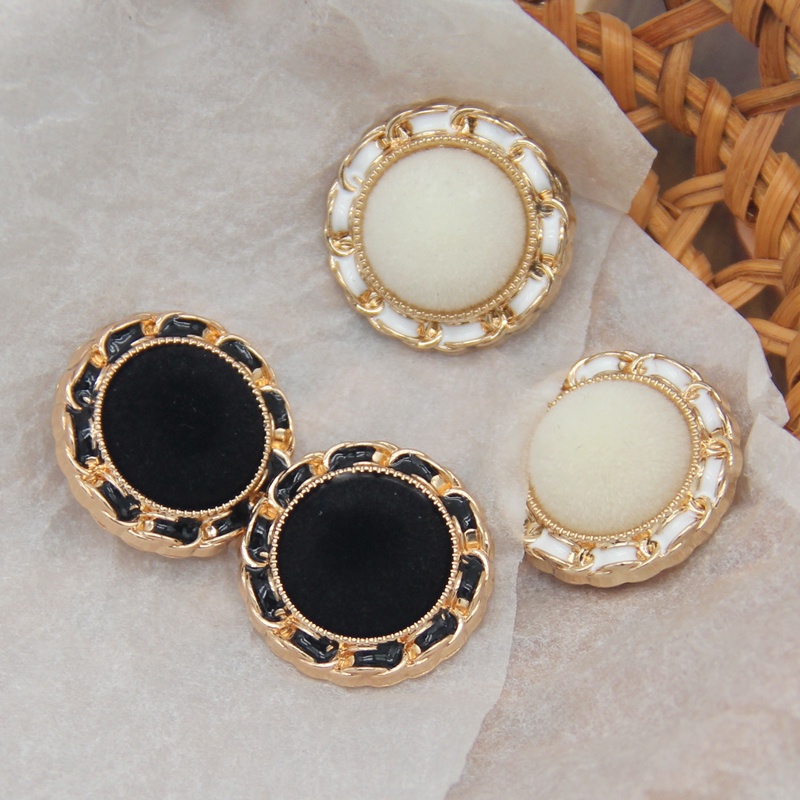 6pcs 18/23/25mm Round Fabric Flocking Gold Metal Buttons For Clothing Plush Sweaters Blouse Fur Coat Vintage Handmade Large Decorations White Black
