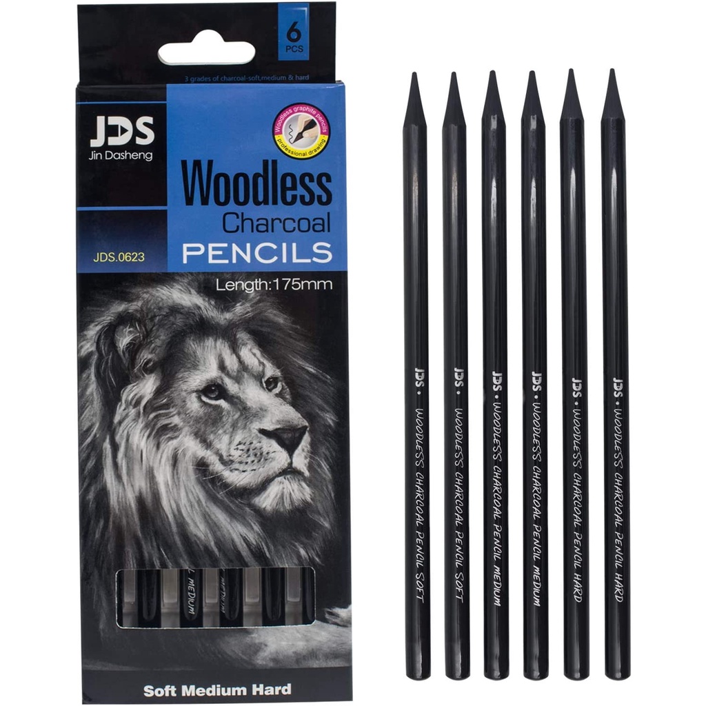 6pcs Charcoal Pencil Pencils For Sketching Drawing Professional Features 3 Grades For Artists & Beginners Including Soft, Medium and Hard Artist Pencil