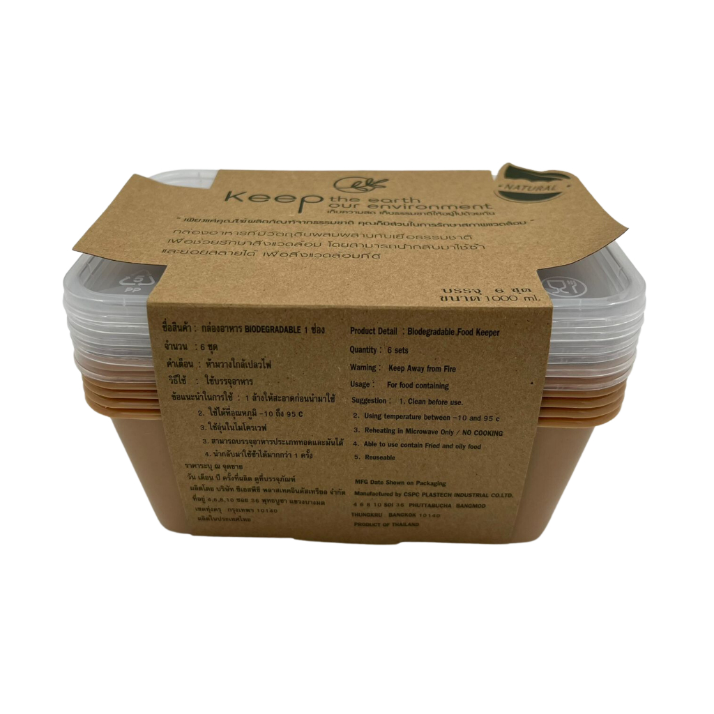 6pcs Reusable BioPlastic Food Container with Lid (1000ml) / Microwavable Rectangle Plastic Container