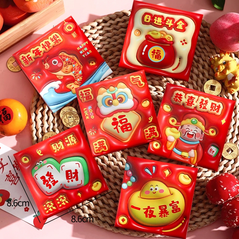 6pcs 3D Red Envelope 2026 Spring Festival Angpao Horse Year Red Packet 新年立体紅包