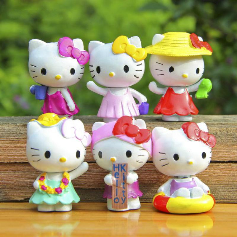 6pcs/set Hello Kitty Cat Set Miniatures Doll Kids Toys Fairy Garden Handicraft Decoration Bonsai Figurine Garden Decoration