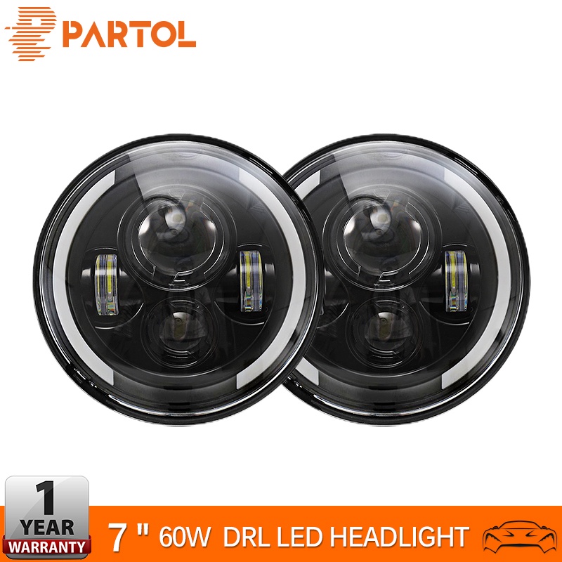 7" 60W LED Round Headlights For Jeep CJ/Wrangler JK LED Headlamp Driving Light for Land Rover Defender H4 H13 Angel Eyes