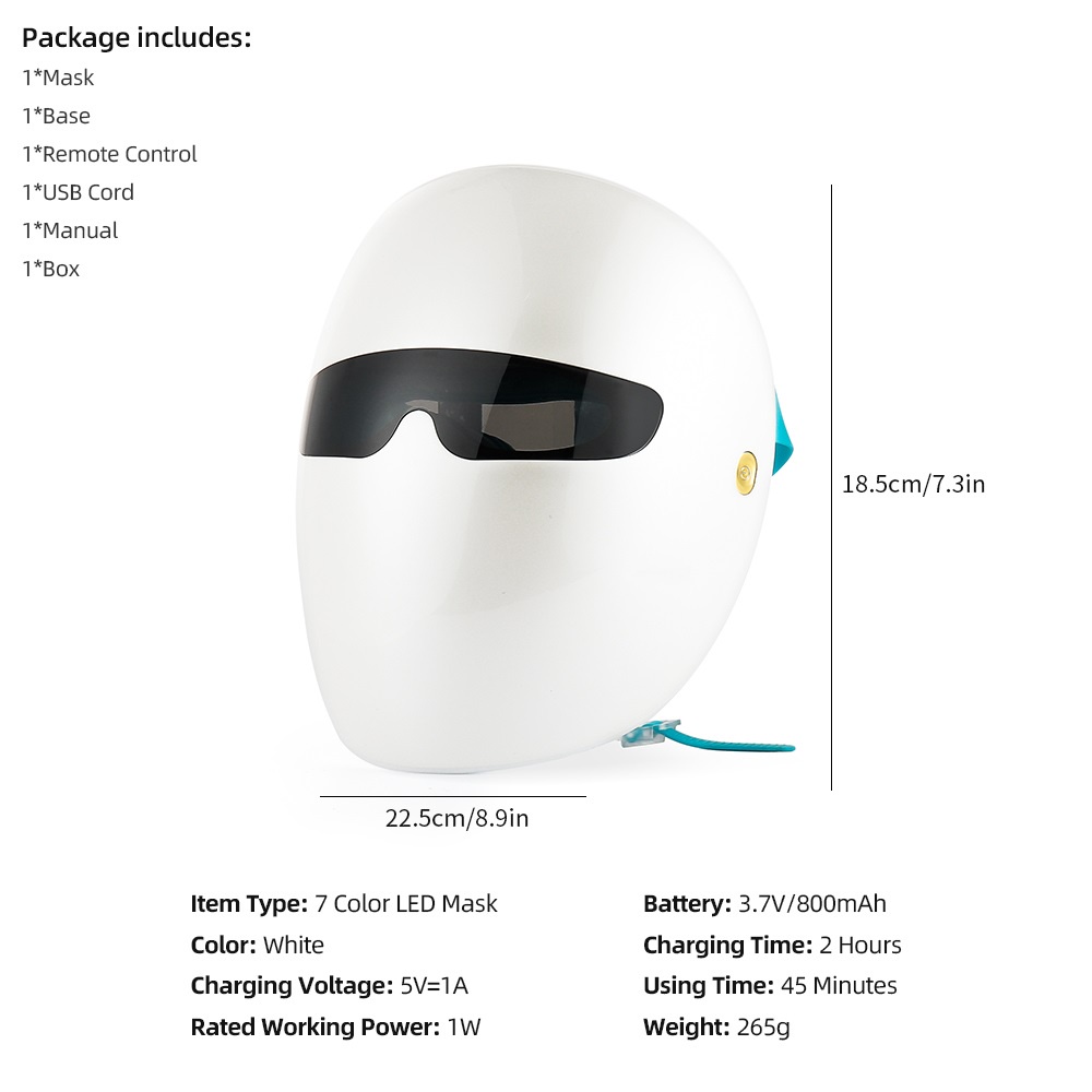 7 Color LED Face Mask Light Therapy Skin Rejuvenation Therapy Rechargeable Convenient LED Photon Mask Light Facial