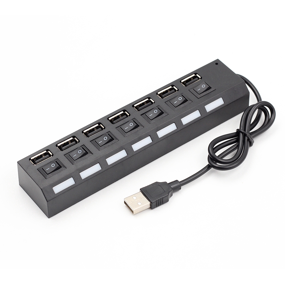 7 Port USB Hub Multi Charger With USB Splitter Power On/Off Switch For PC Laptop Smartphone