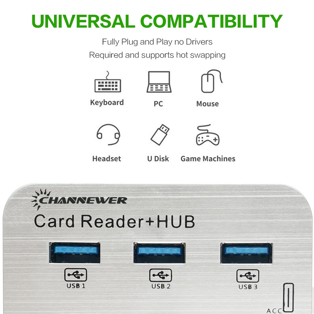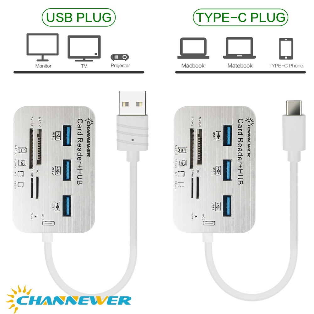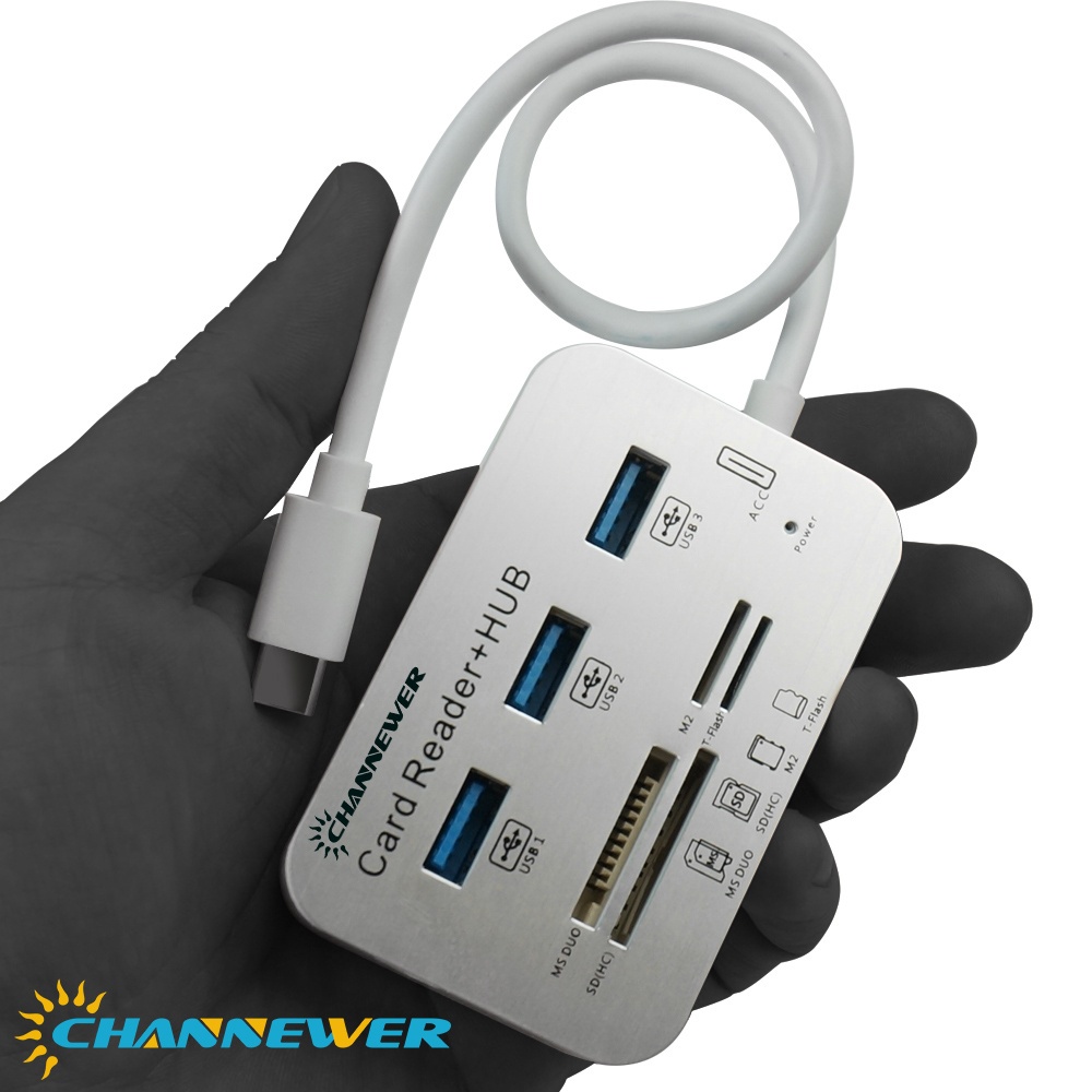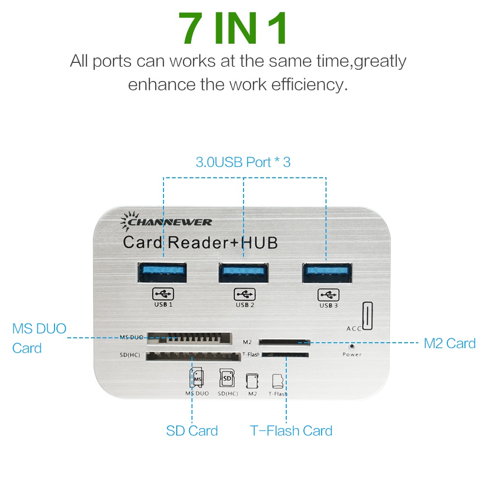 7-in-1 Card Reader with 3 Ports USB 3.0, High Speed External Memory Card Reader Built-in MS,Micro SD,SD/MMC,M2,TF Card Slots ABS Aluminum Alloy Adaptor STONEGO Computer Peripherals Compatible with PC, Tablets, Laptops
