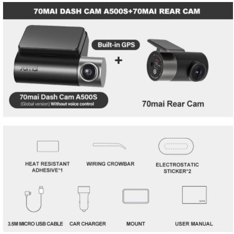 70mai A500S Pro Plus with Rear Cam 1944P Dashcam Built-in GPS Cam Car DVR Camera Global English Version