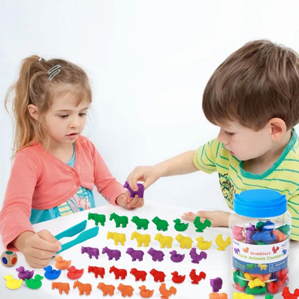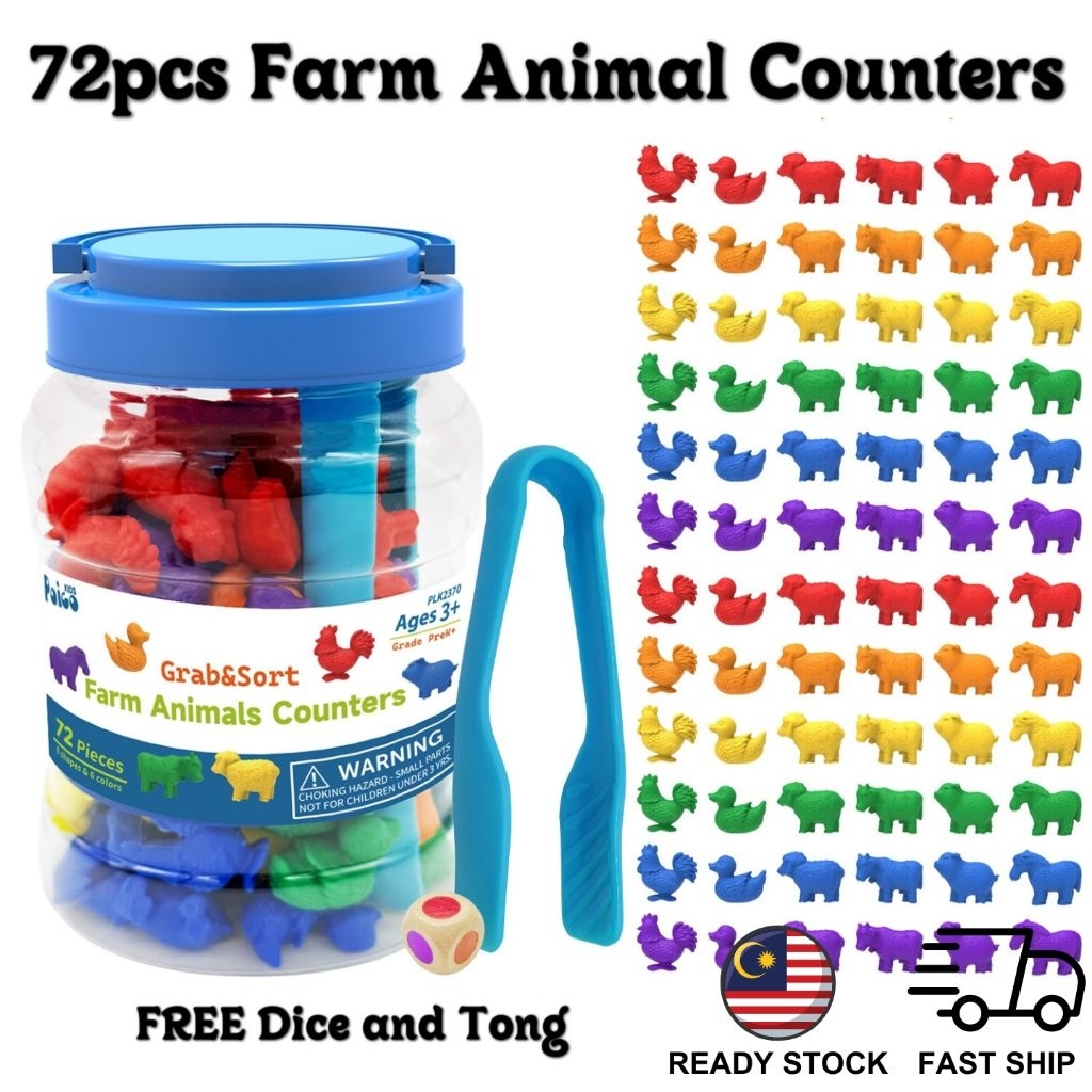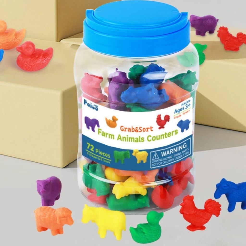 72pcs Farm Animal Counters Educational Toys Montessori Sorting Toy Farm Animals Counting Kids Math Toy Early Learning