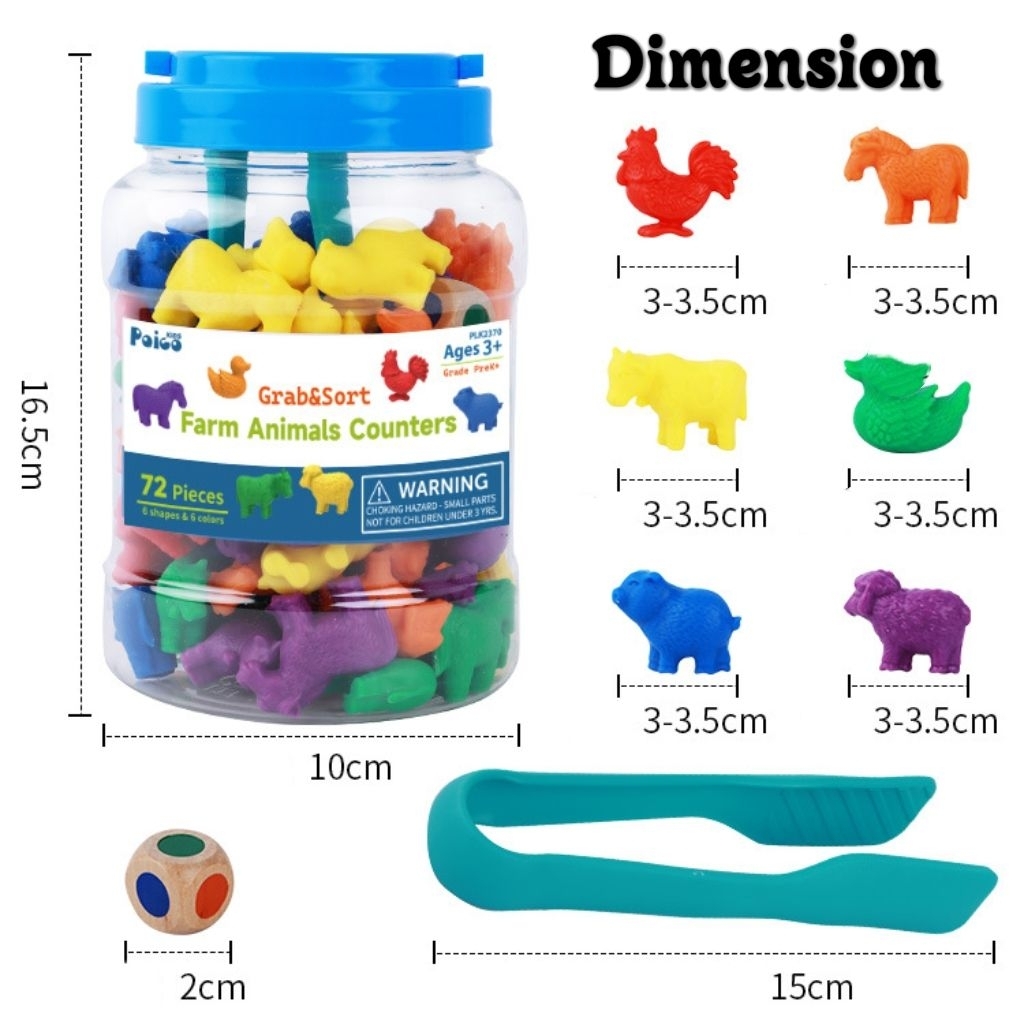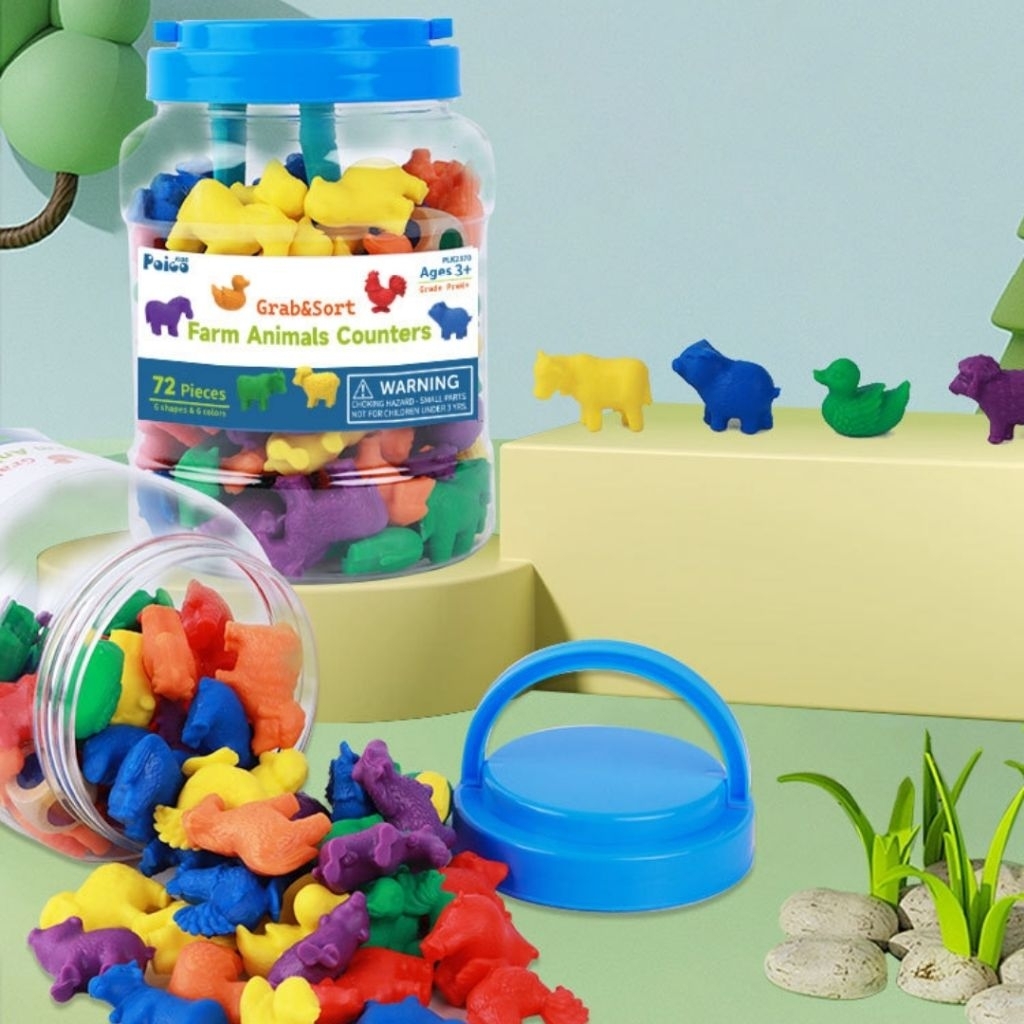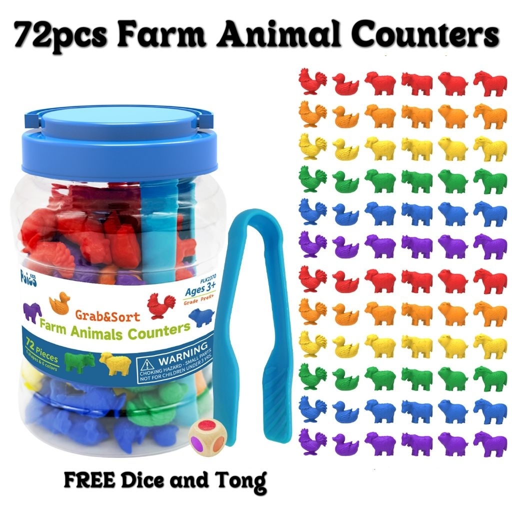 72pcs Farm Animal Counters Educational Toys Montessori Sorting Toy Farm Animals Counting Kids Math Toy Early Learning