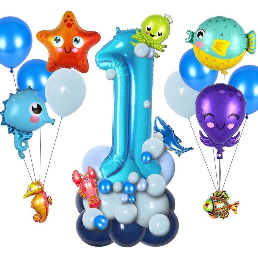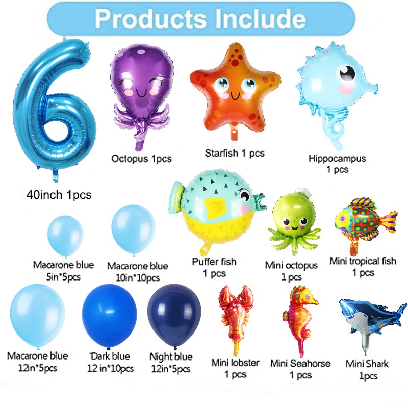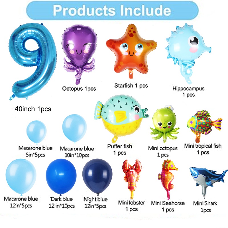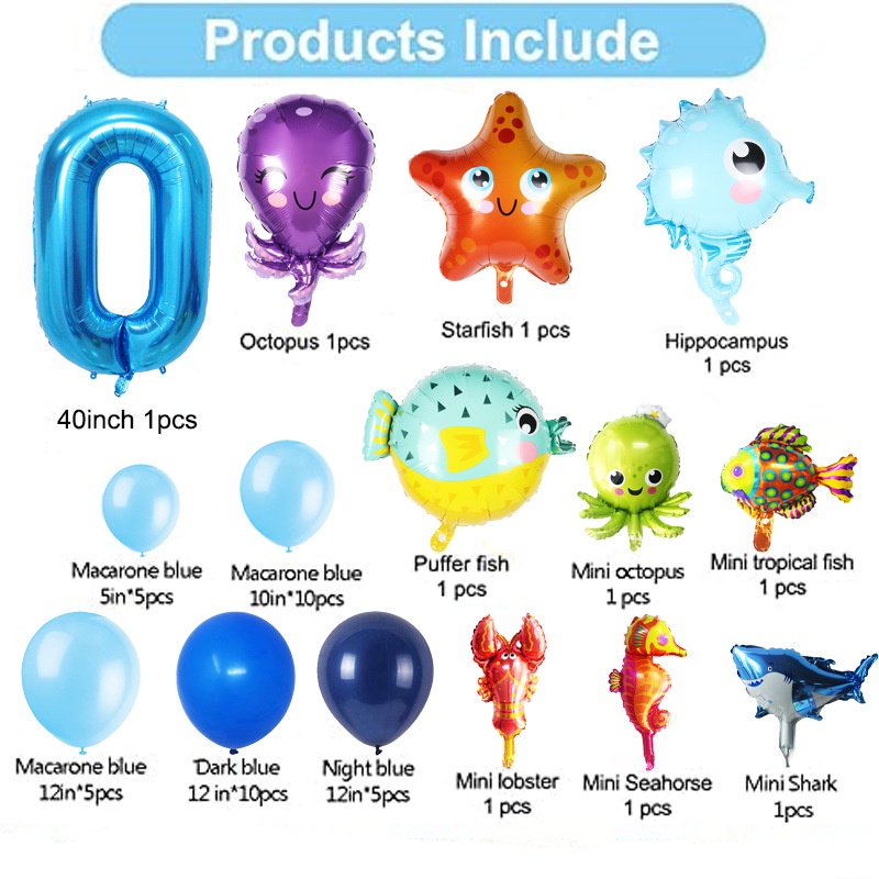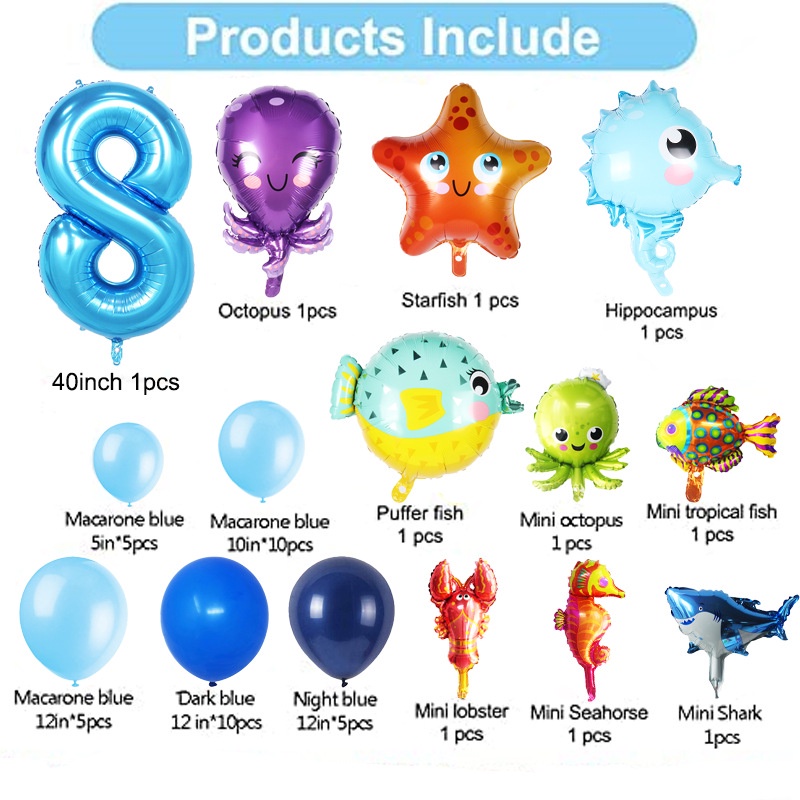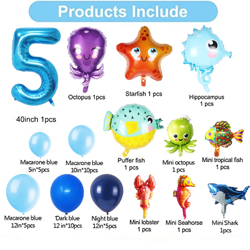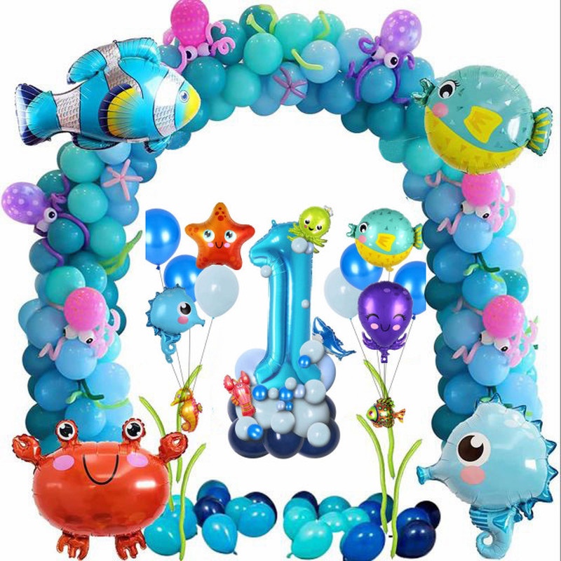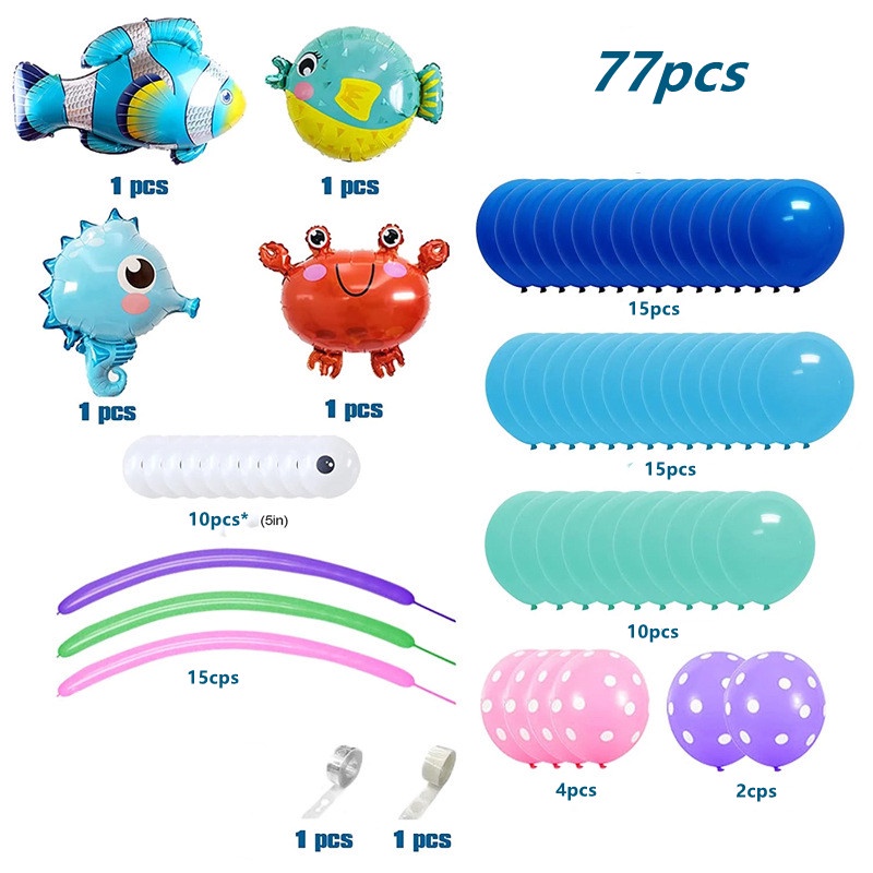 77pcs Ocean Theme Balloon Garland Arch Crab Seahorse 40 Inch Digital Aluminum Foil Balloon Blue Ocean Latex Balloon Children's Birthday Party Bath Party Decorative Balloons