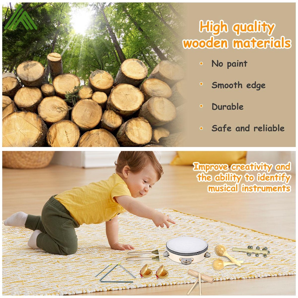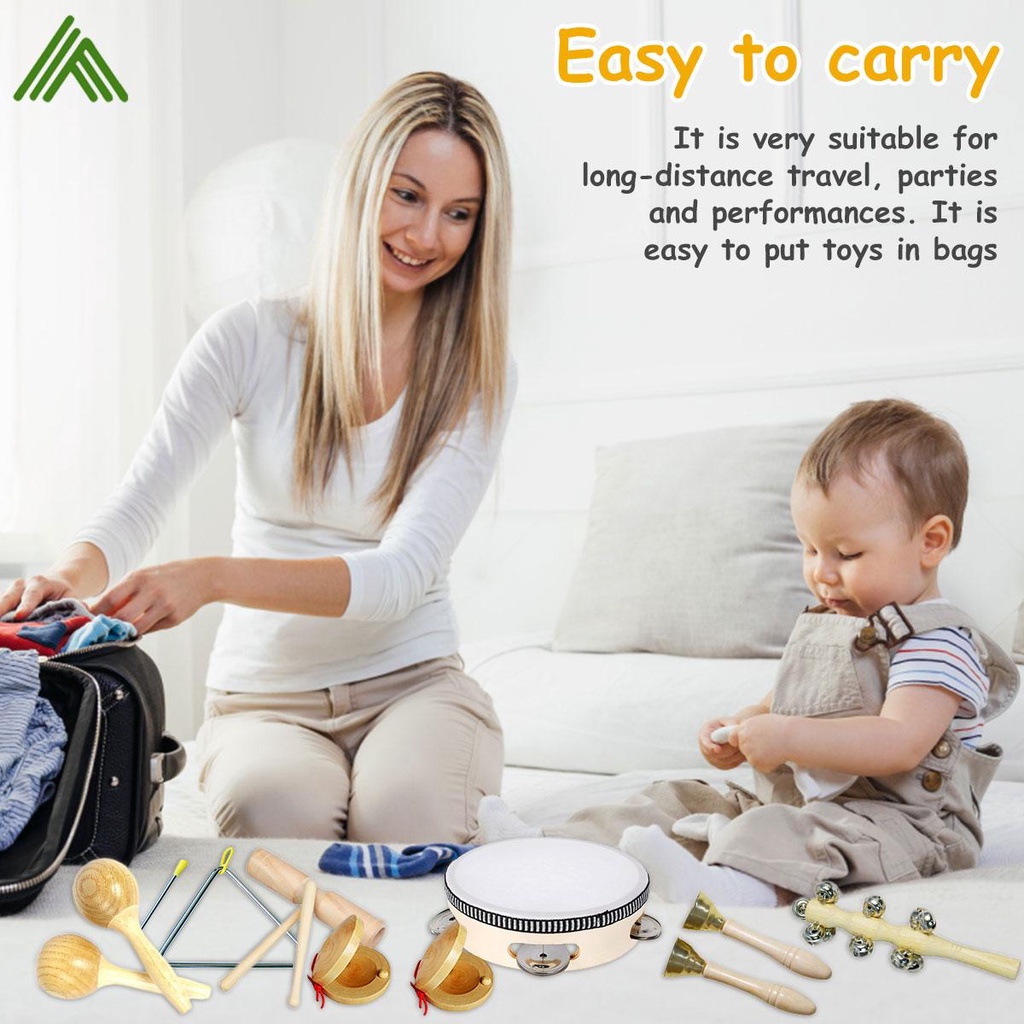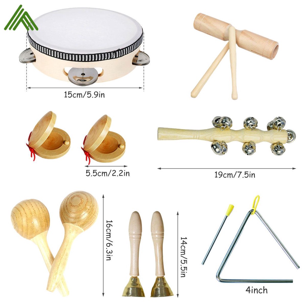7pcs Wooden Percussion Instruments Set Preschool Kids Sensory Musical Instruments with Storage BagSHOPSBC5457