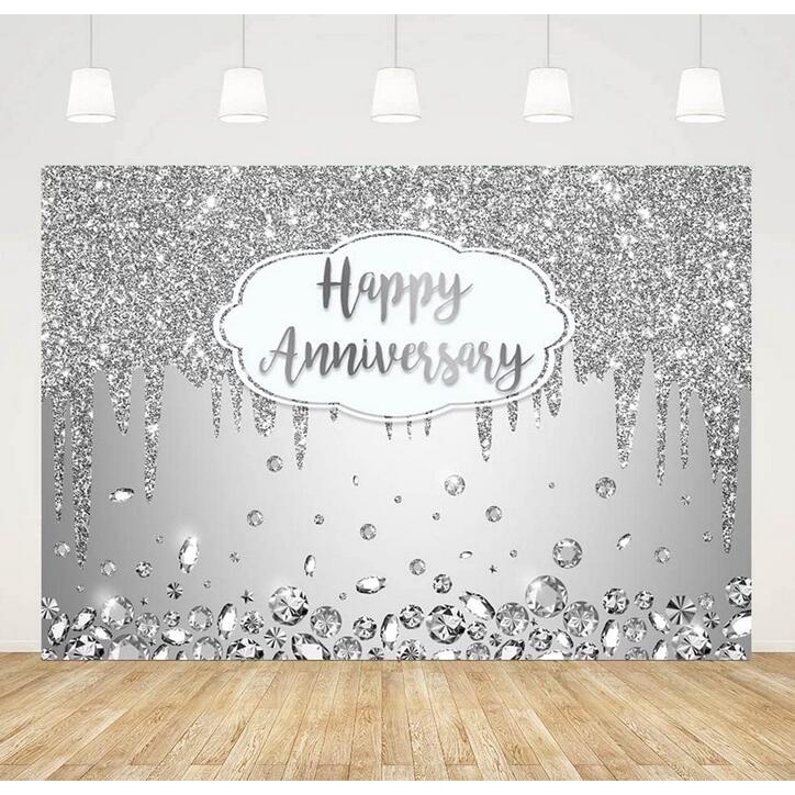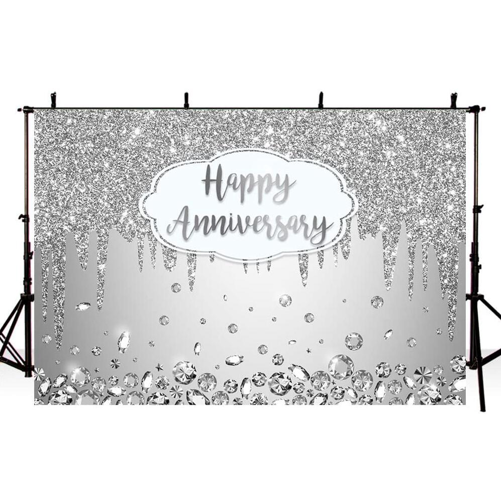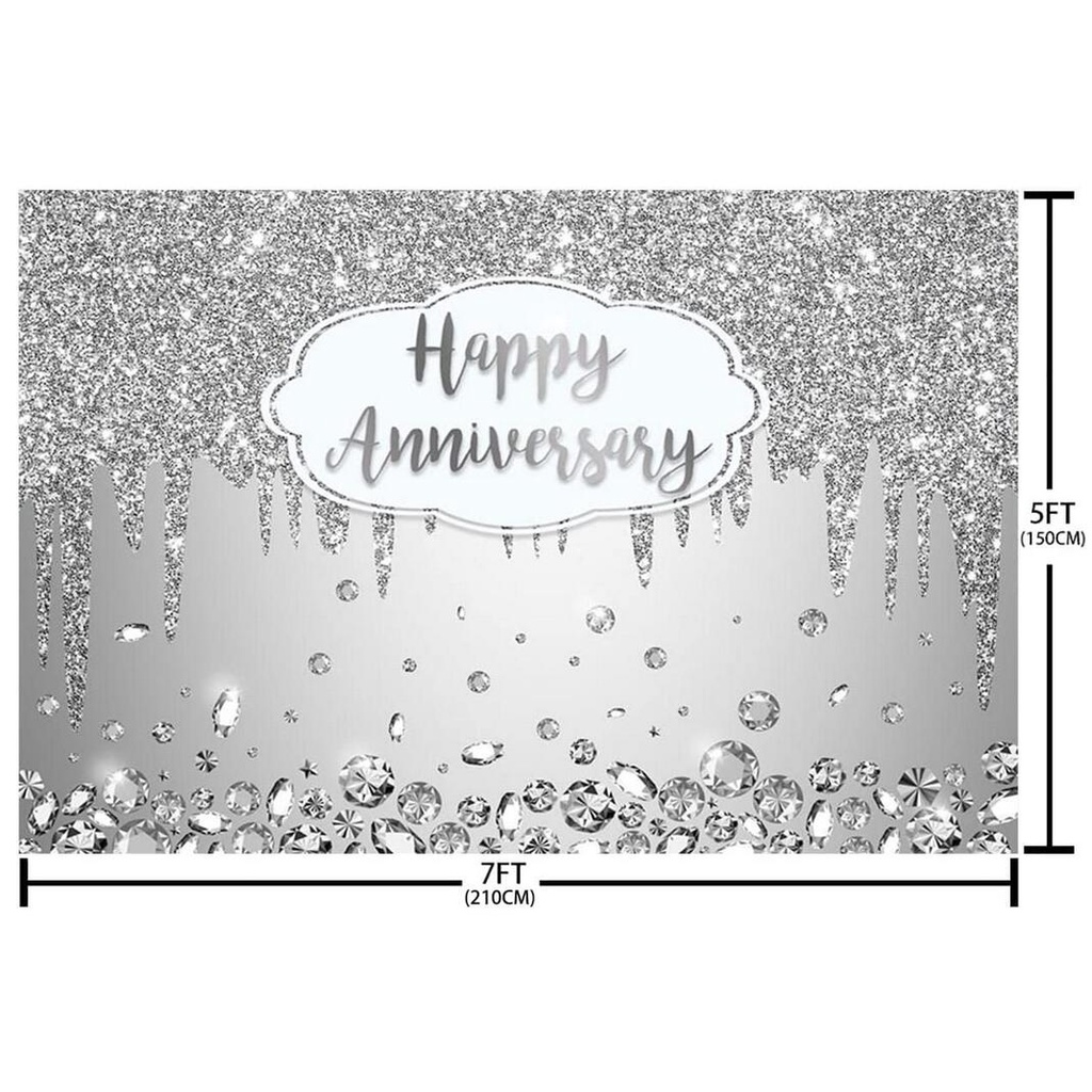 7x5ft Happy Anniversary Backdrop Silver Dripping Glitter Crystals Photography Background Cheers to Wedding Anniversary Party Decorations Banner Photo Props