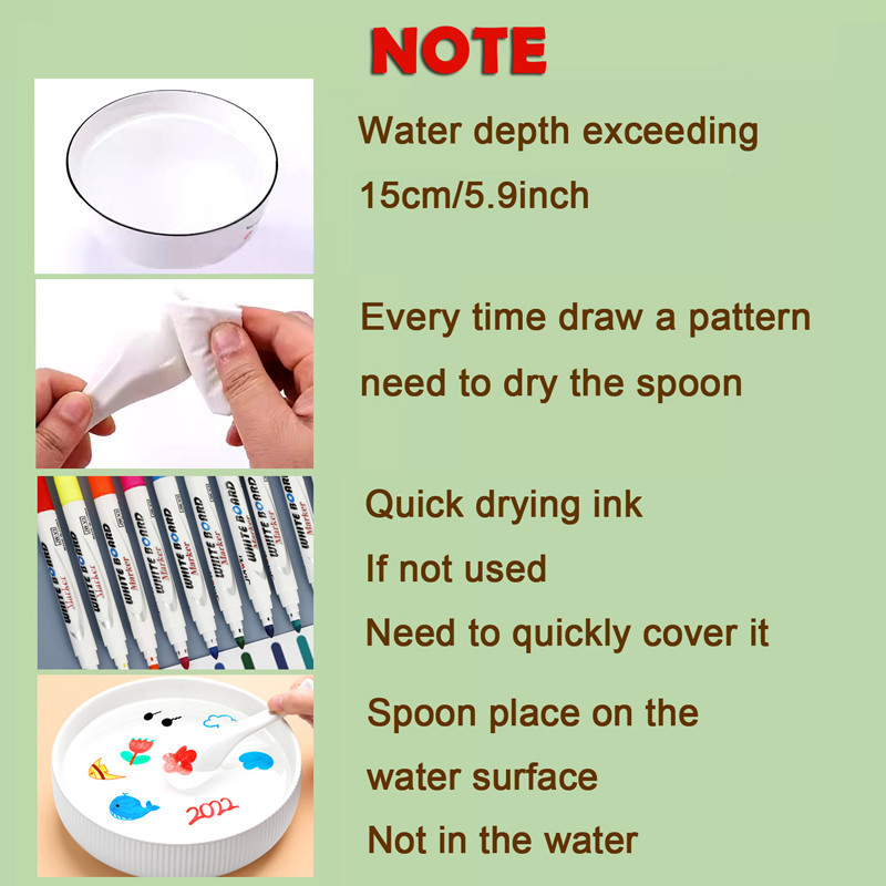 8/12 Colors Floating Pen Children Painting In Water Graffiti Pens Set Magical Whiteboard Marker with Spoon Early Learning Toy