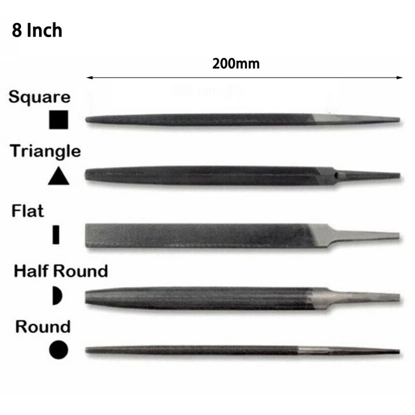 8 Inch 200mm Alloy Steel Files Without Handle Round Half-round Triangular Square Flat Filing Holes Tools For Metal/Wood