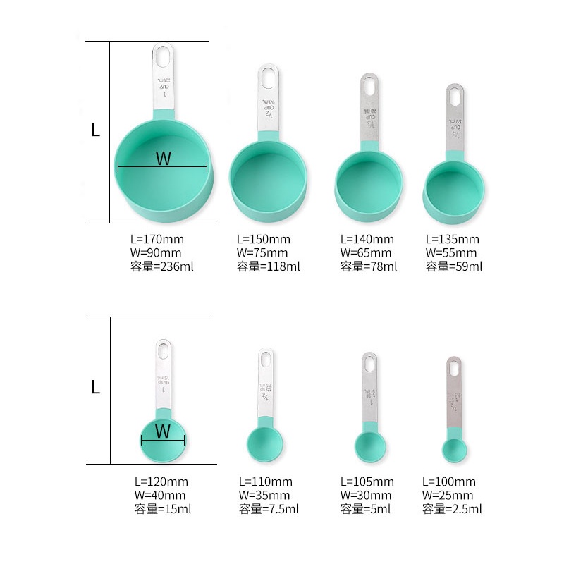 8 Pcs Stainless Steel Handle Measuring Cups Spoons Sets