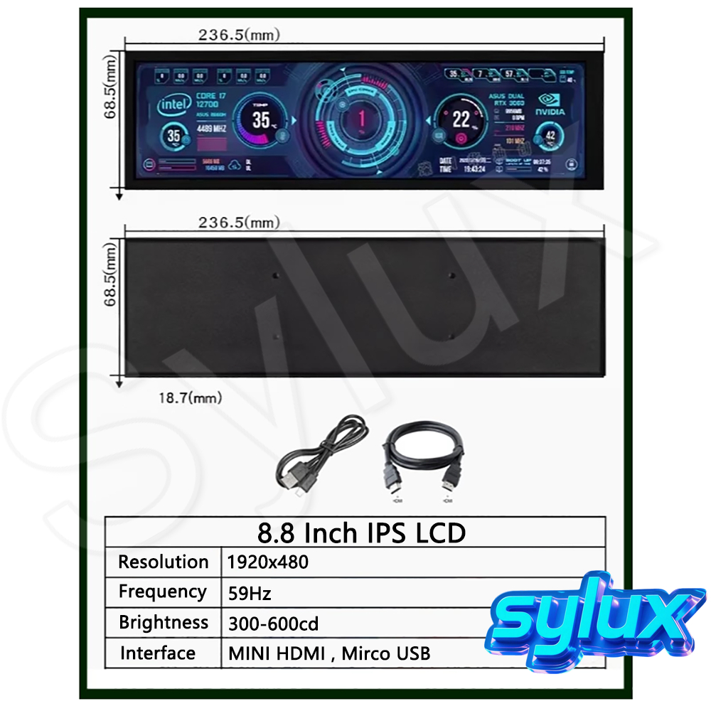 8.8 Inch TFT LCD Portable Screen Long Strip Raspberry PI / PC Case / Aida64 Second Extended Monitor