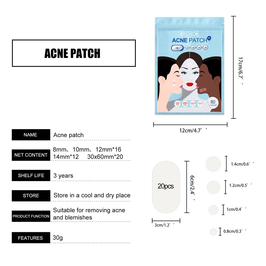 80 Pcs Multi-sized Acne Patches / Face Quick Effect Removing Pimple Invisible Stickers / Face Skin Care Beauty Acne Tools