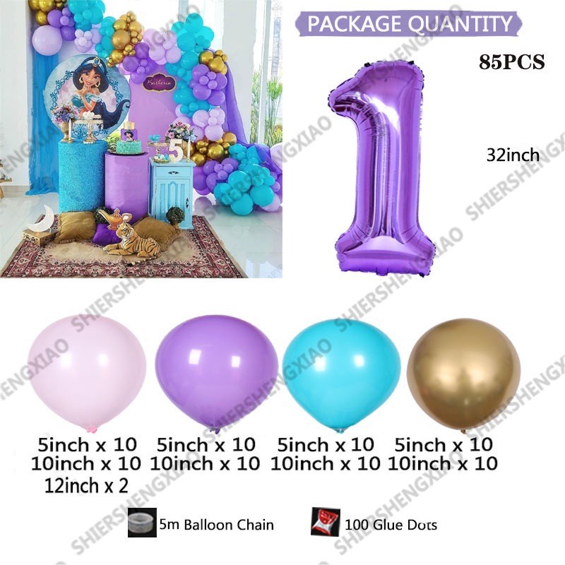 85pcs Disney Aladdin Princess Jasmine Theme Balloon Garland Arch Kit Happy Birthday Party Decorations Baby Shower Supplies