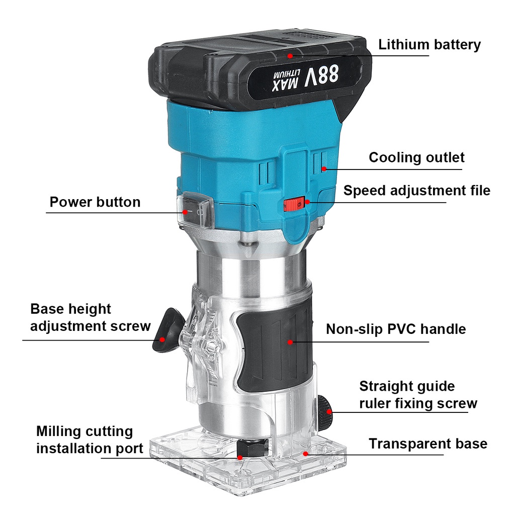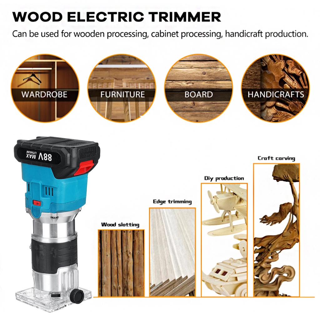 88V 30000RPM 6 Speeds Electric Trimmer Brushless Cordless Rechargeable Wood Router Hand Trimming Machine for 18V Battery