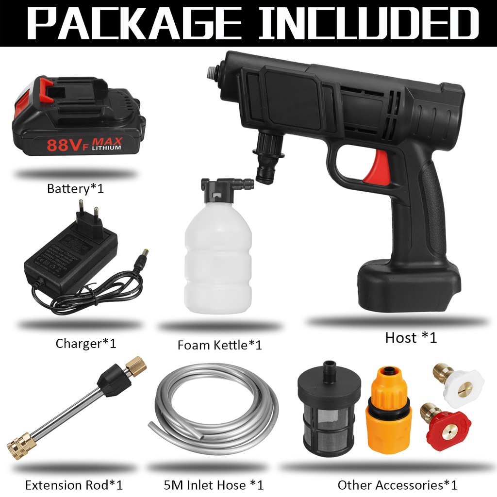 88VF 1500W High Pressure Cordless Washer Spray Guns Water Cleaner Rechargeable Car Wash Gun Electric Water Gun Foam