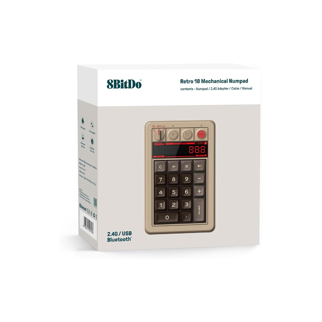 8BitDo Retro 18 Mechanical Numpad, Calculator, Bluetooth/2.4G/Wired Numpad for Windows and Android