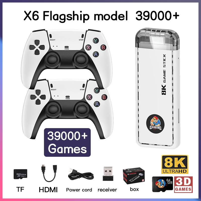 8K HD Video Game Console 64G Built-in 39000 +Games Retro handheld Game Stick Wireless Controller Supports PS1 PS2 Games