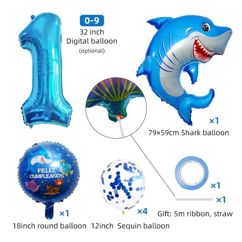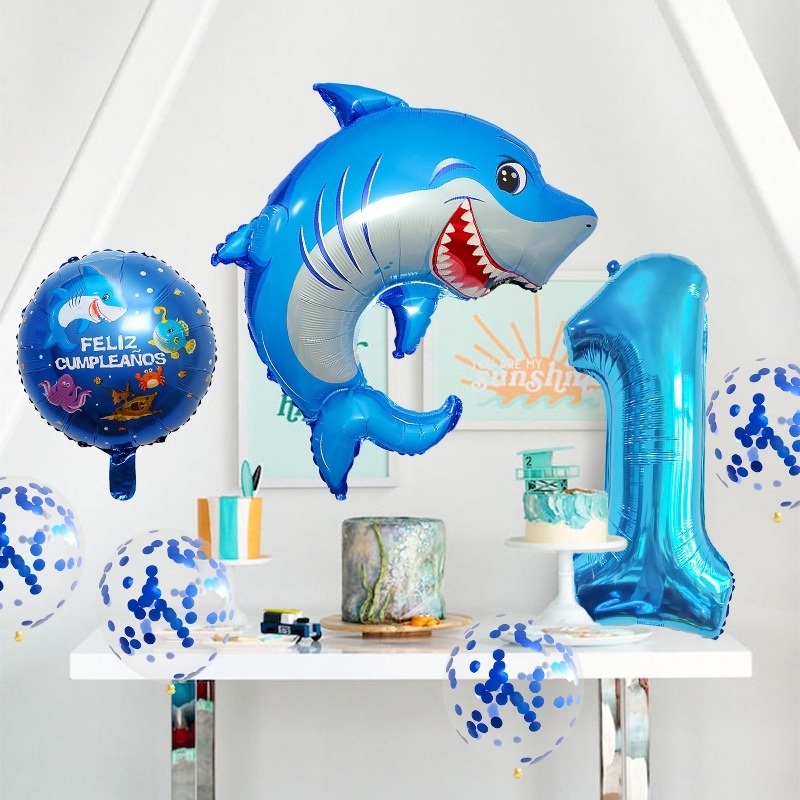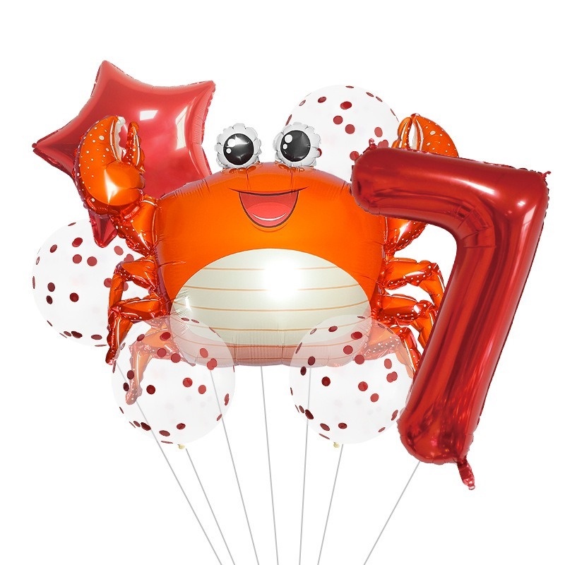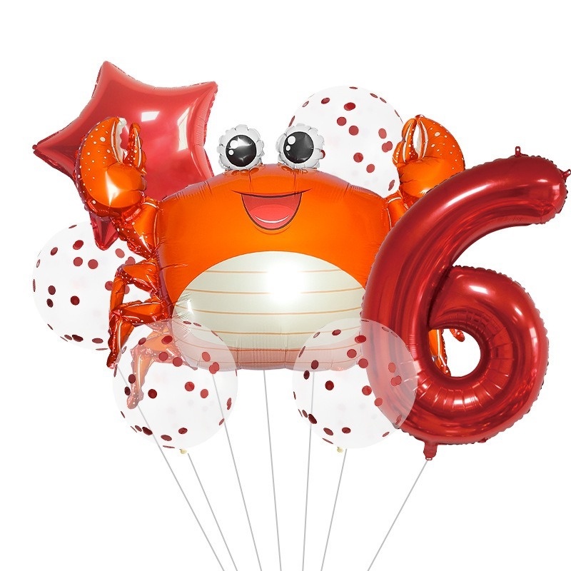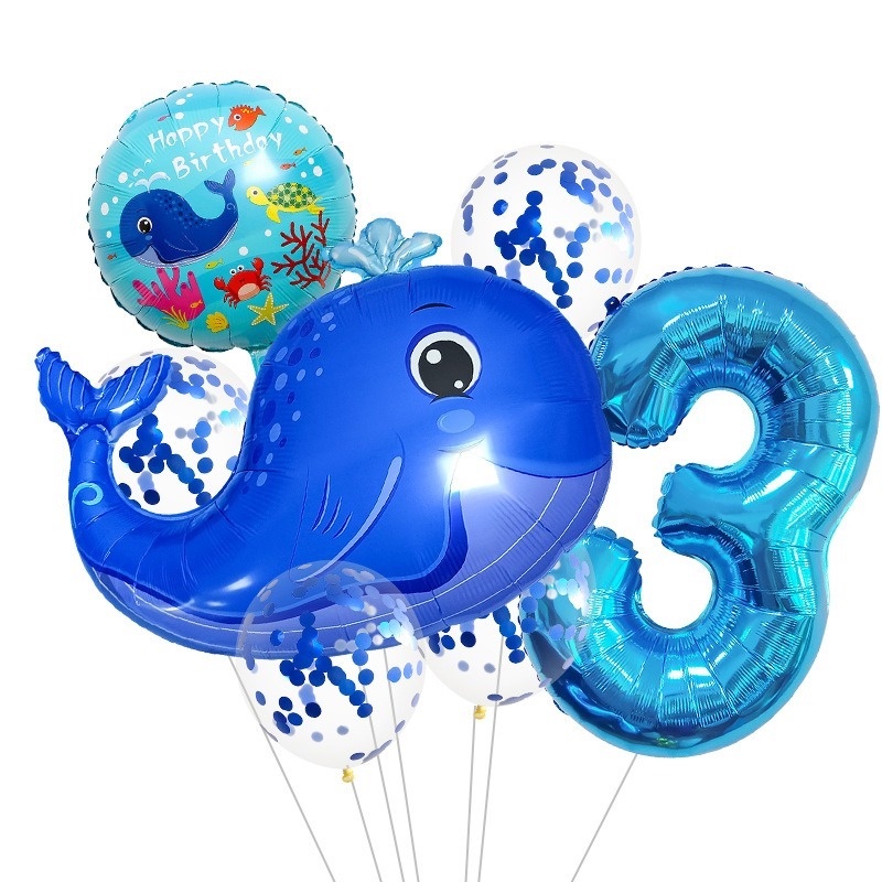 8pcs Ocean Balloons Cartoon Lantern Fish Shark Whale Crab Aluminum Foil Digital Balloons Children's 1st Birthday Party Ocean Theme Party Beach Party Decorations Children's Toys