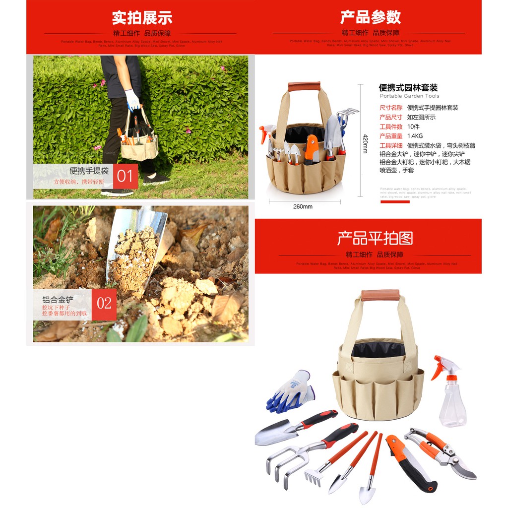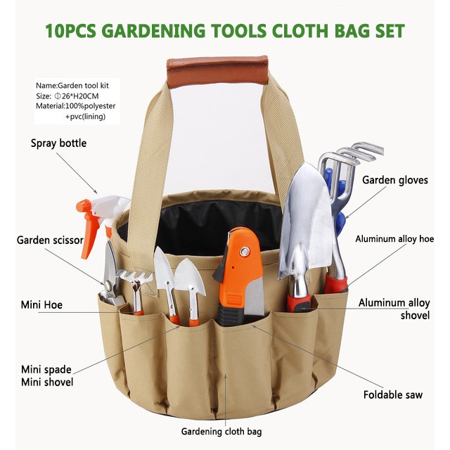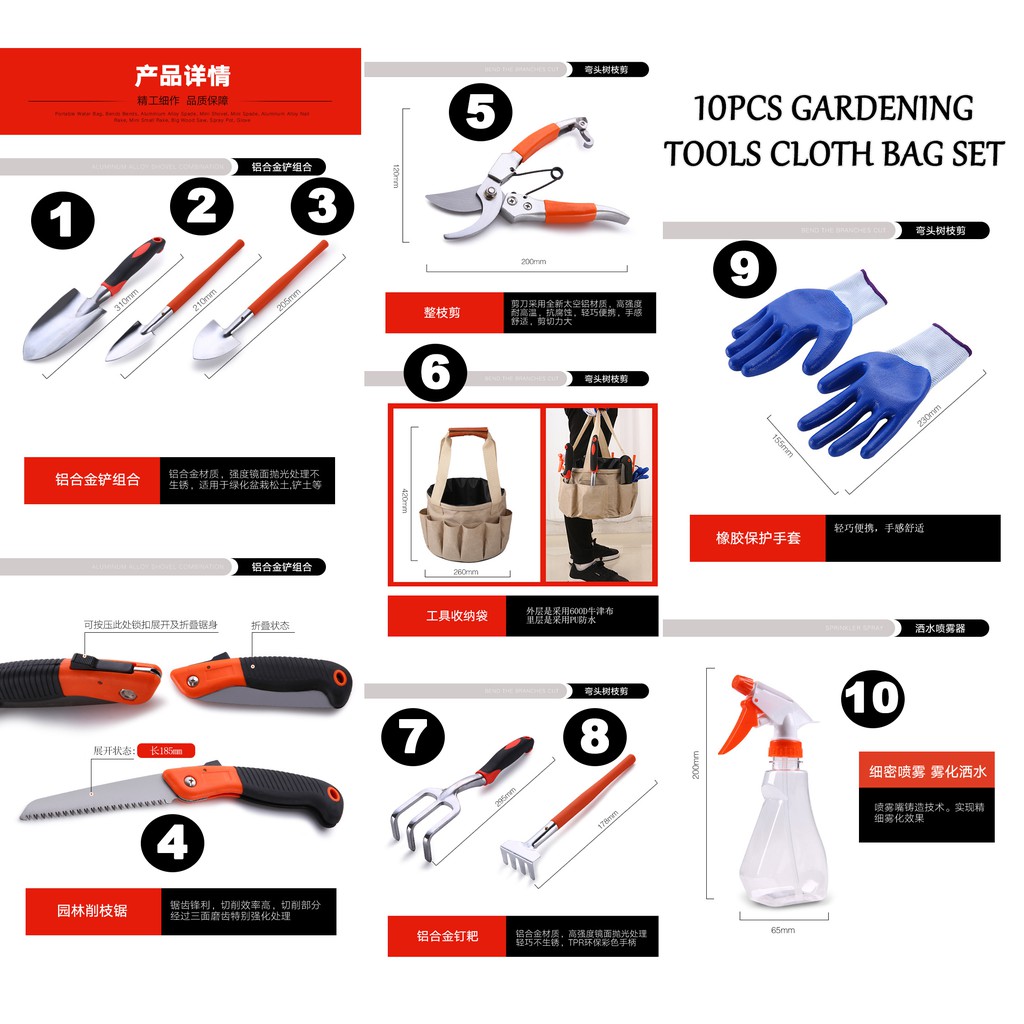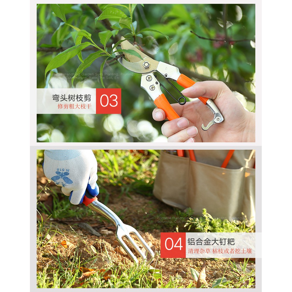 9/10/15Pcs Multi-use Gardening Garden Tools Box Set w Spade /Scissors/Shovel/Hoe/Cutter/Knife/ Measuring Tape/Saw/Shears