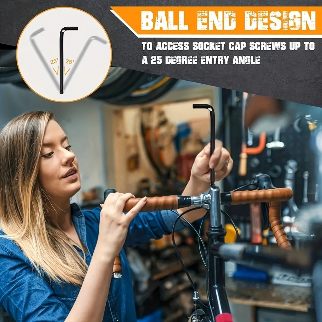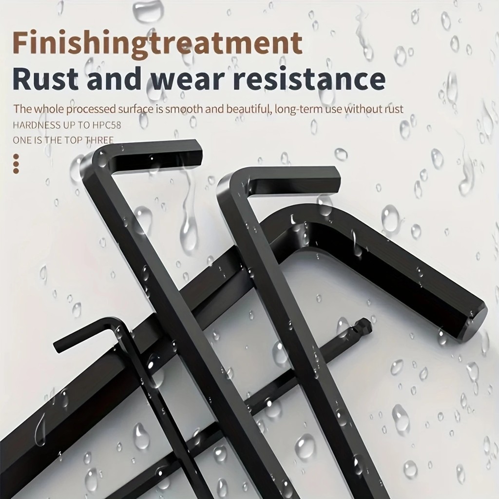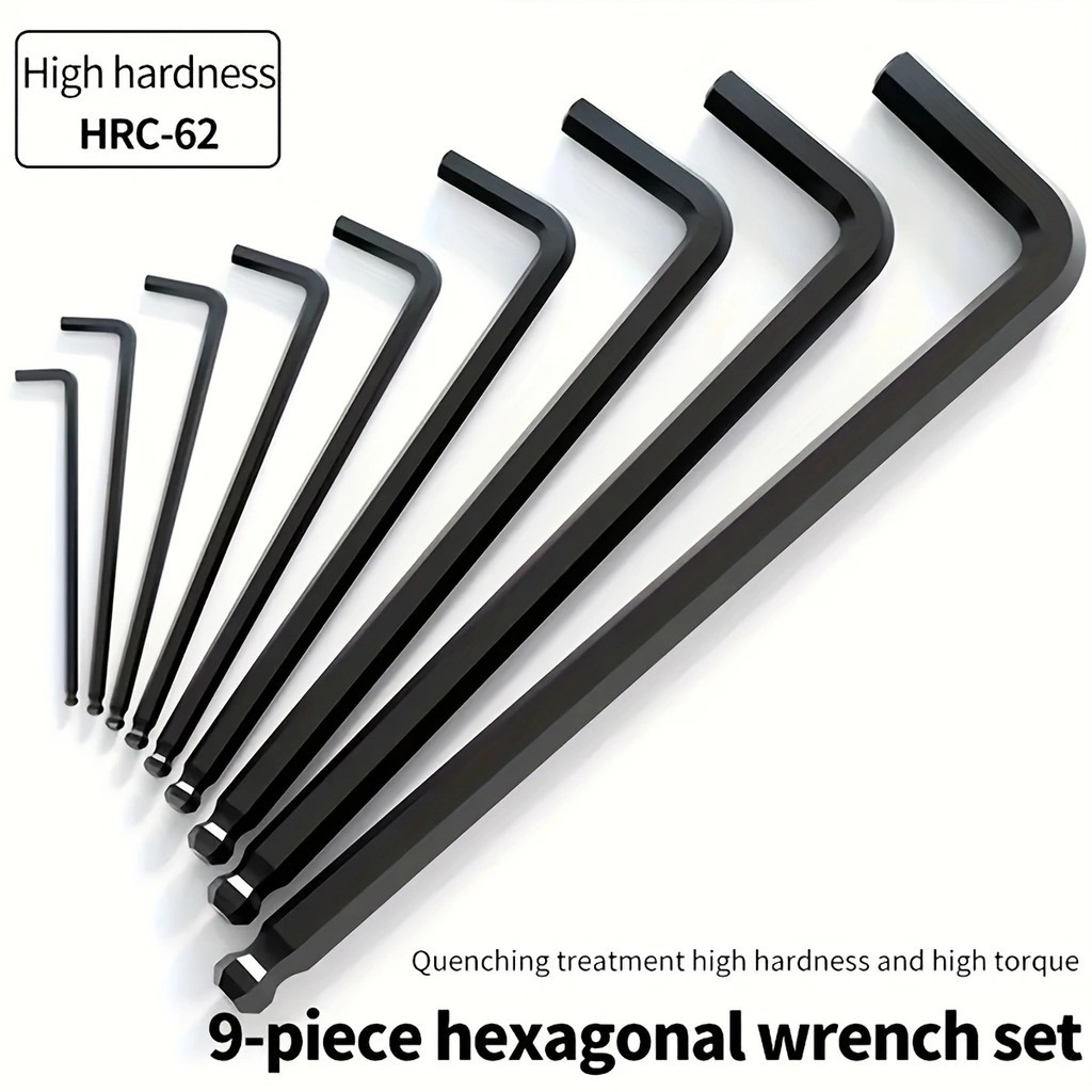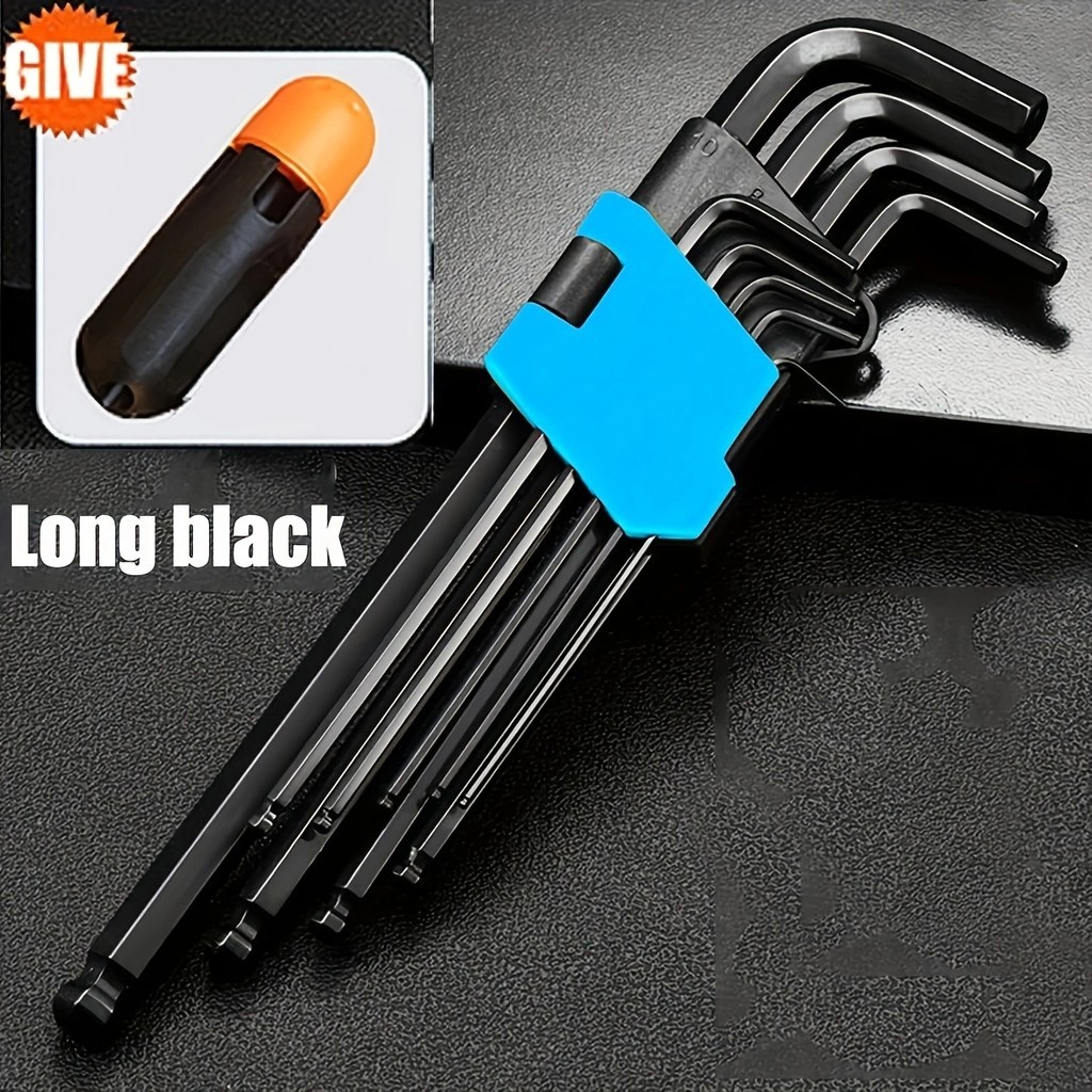9-Piece,Hex Key Allen Wrench Set, Ball End Hex Key Set, Metric L-Wrench, Chrome Vanadium Steel, Industrial Grade, Strength Helping(Long black)
