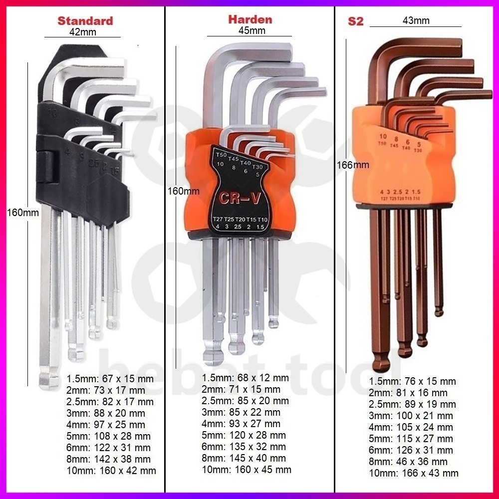 9 pcs Allen Key Wrench Set Ball Point Flat Head Hex Torx Star Extra Long CRV S2 Allenkey Screwdriver Spanner Spline Key