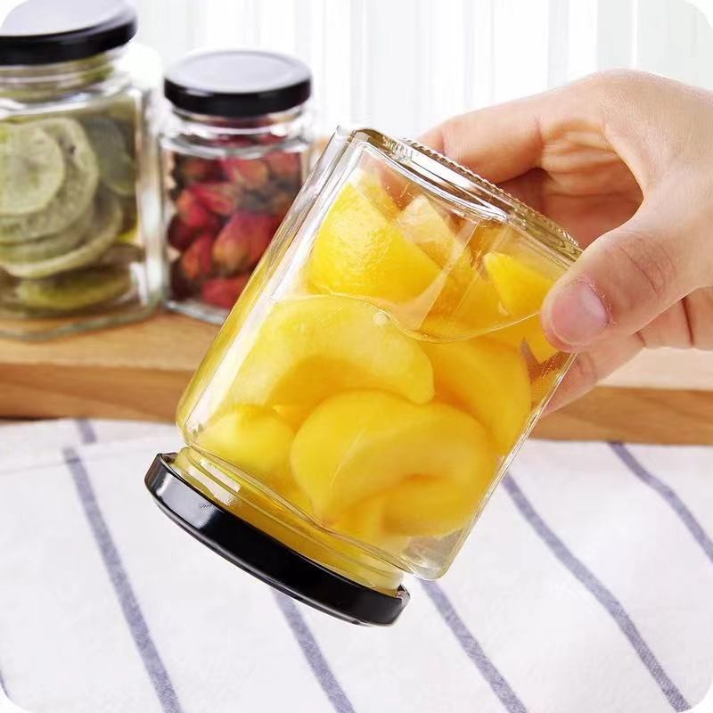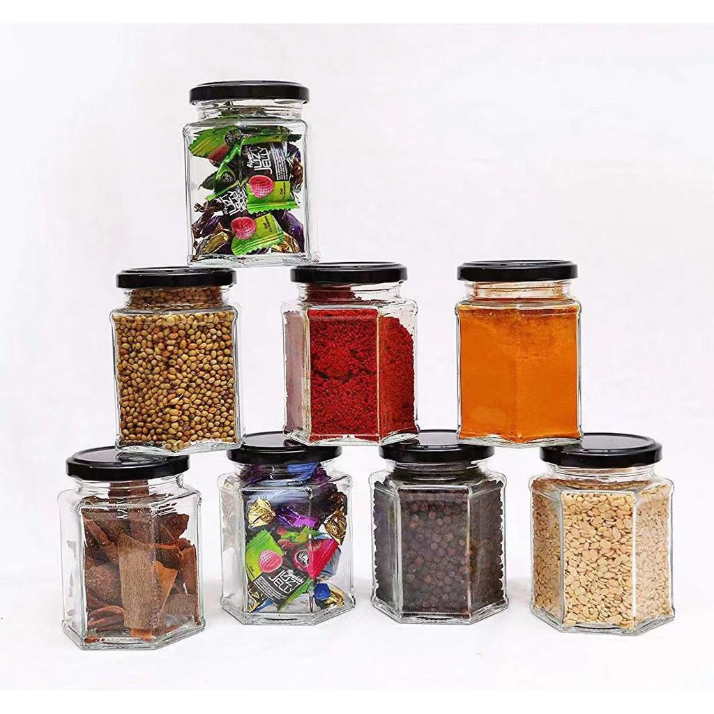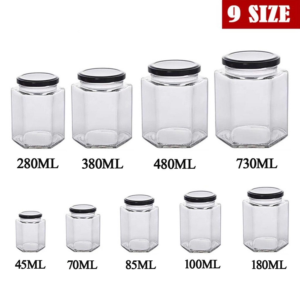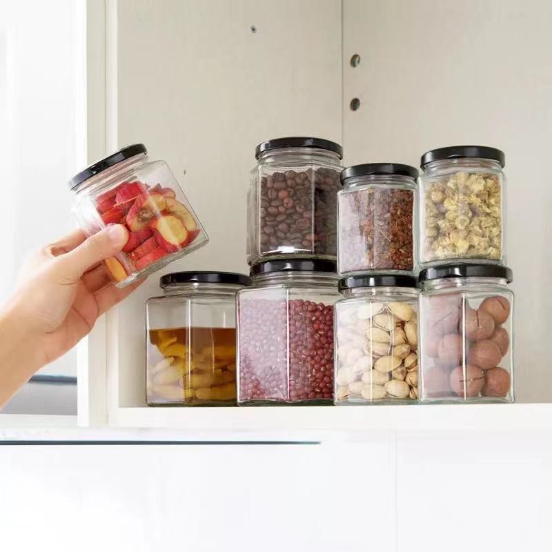 9 size bottles Clear Glass Jar Container with Black Lid Kitchen Spice Storage Tea sugar