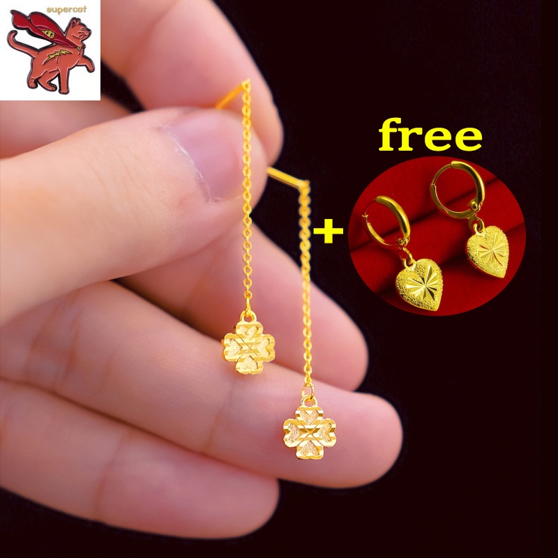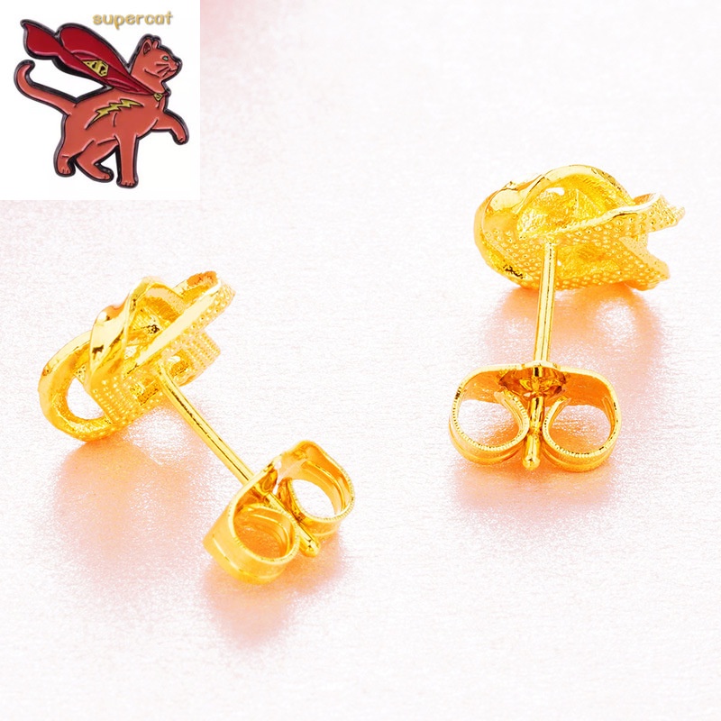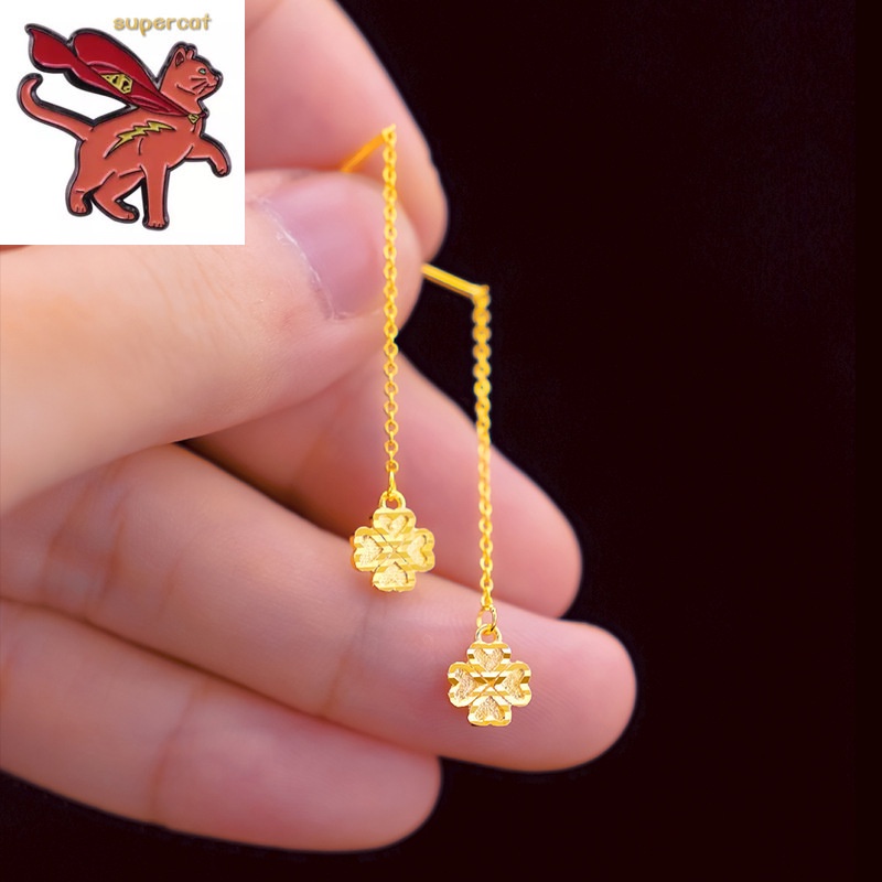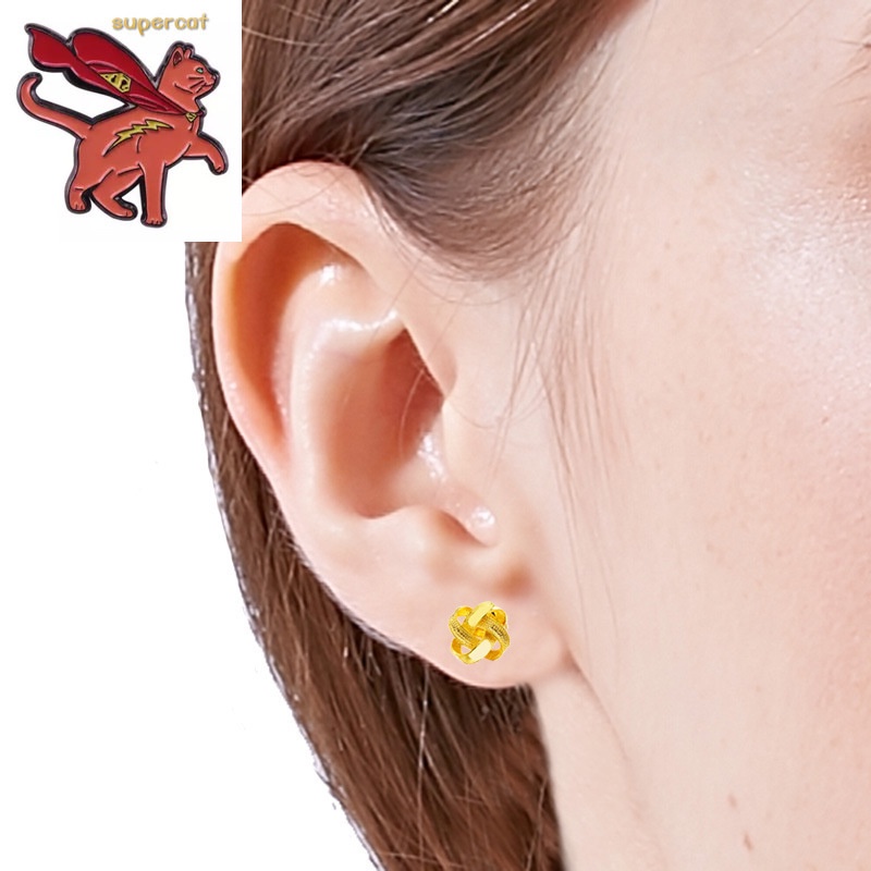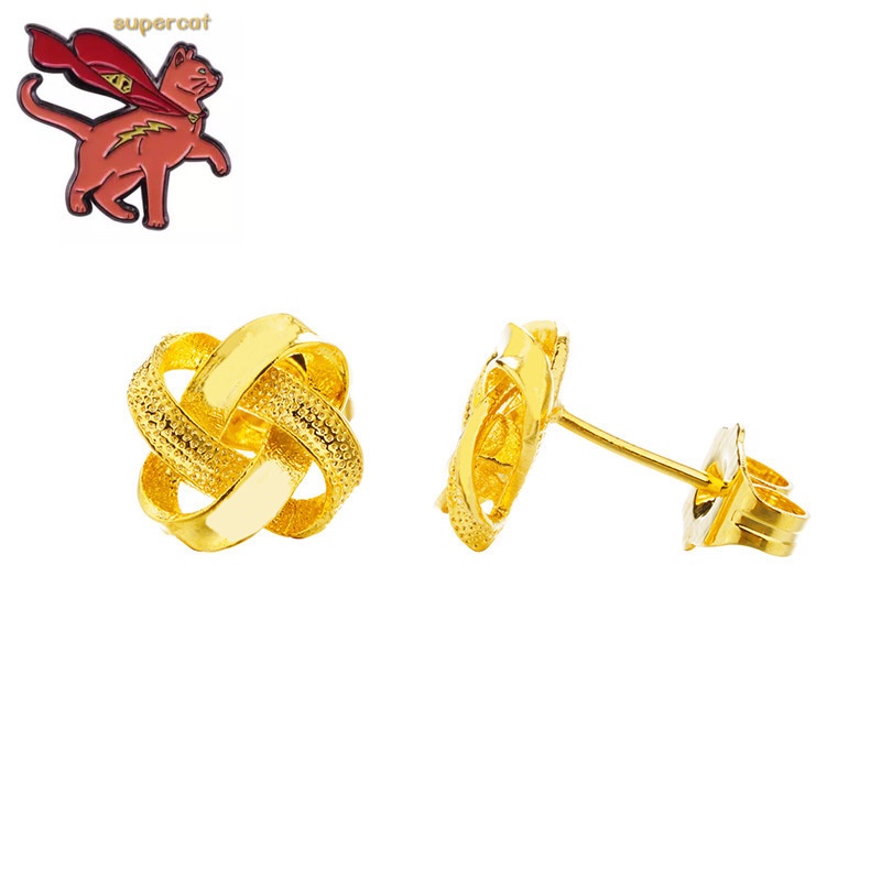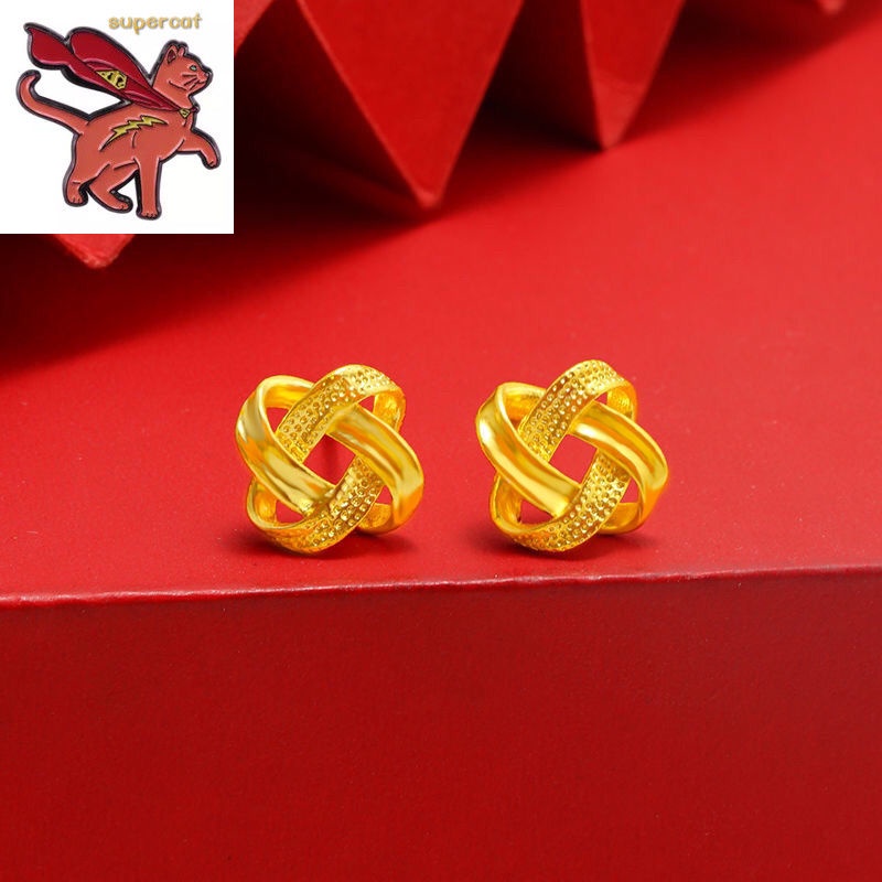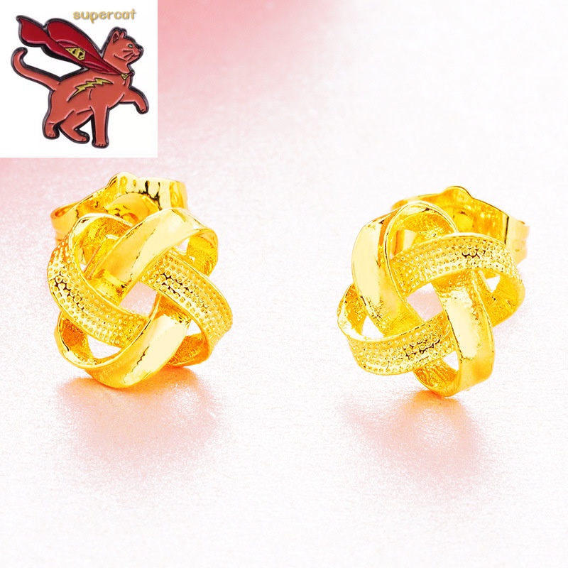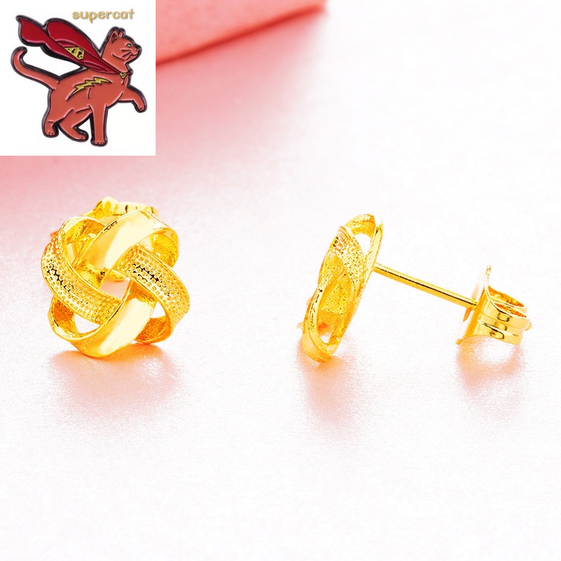 916 gold earrings Pure Real Gold Earring For Women Vintage Fashion Weave