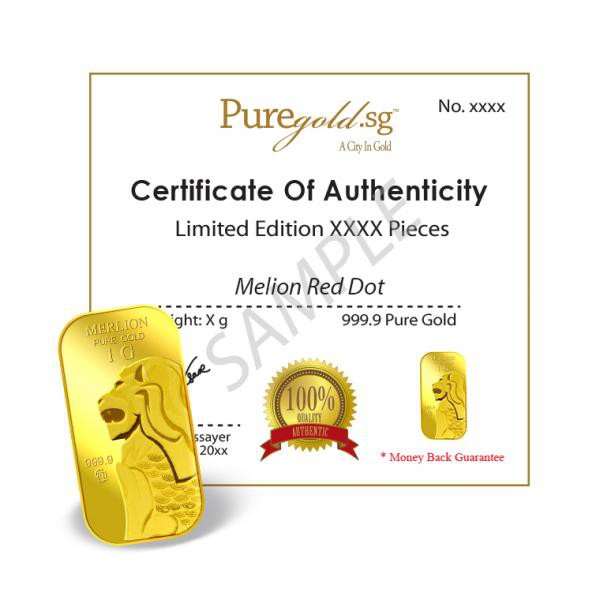 999.9 Pure Gold | 1g Singapore Merlion Red Dot Gold Bar