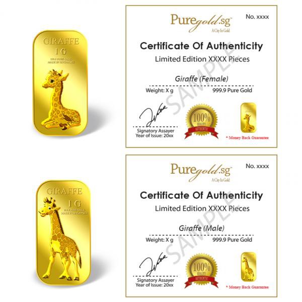 999.9 Pure Gold | 1g x 2 Female & Male Giraffe Gold Bar