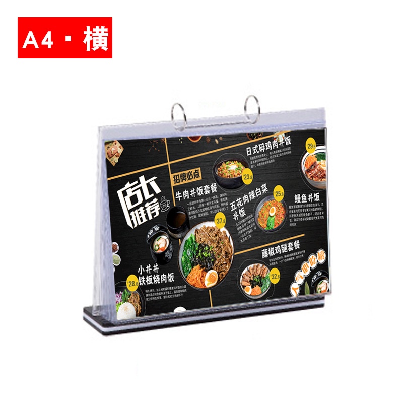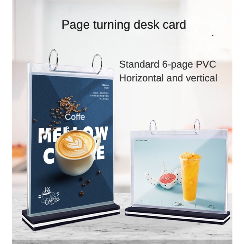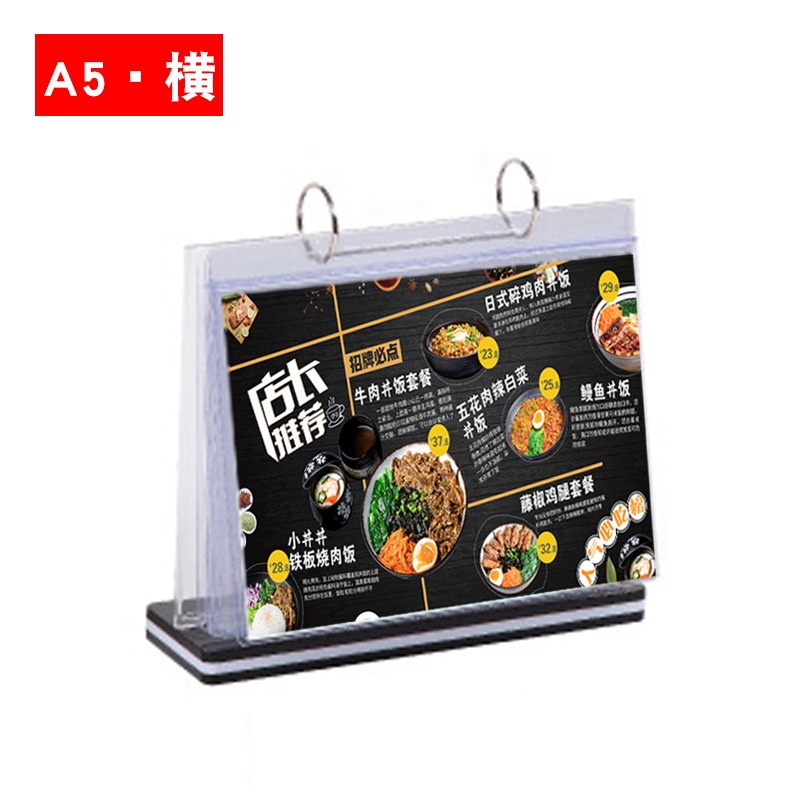 A a4 Flip Table Card pvc Loose-leaf Menu Card Display Stand Desktop Dining Card a5 Vertical Advertising Wine Water Card Table Card Table Sign