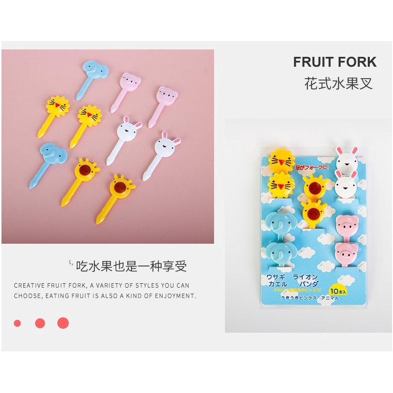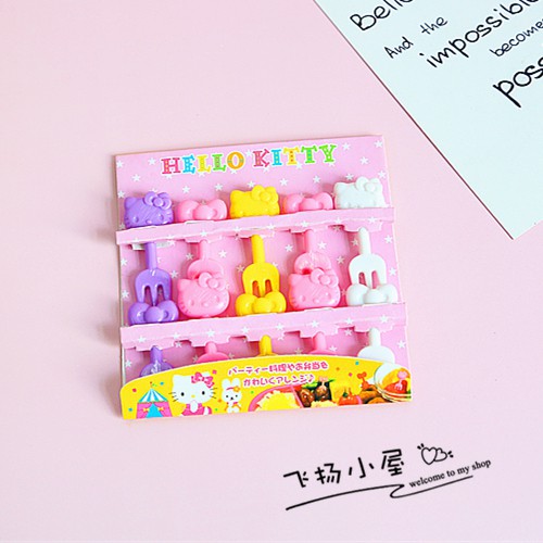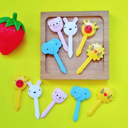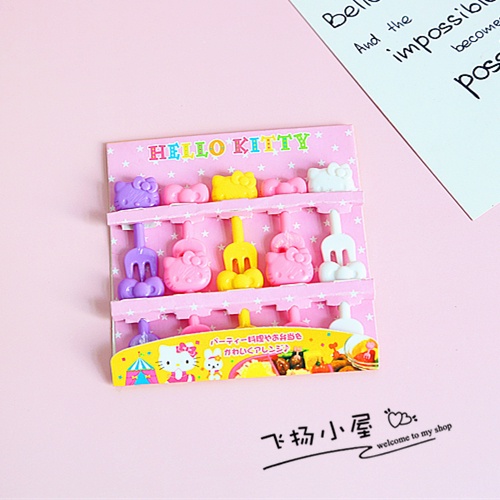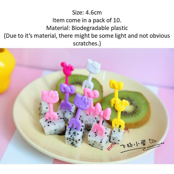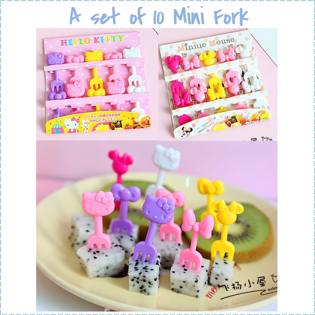 A set of 6/7/10 Mini Forks for fruits Cute Minnie Kitty plastic fork safe toothpicks animals cats animal cat