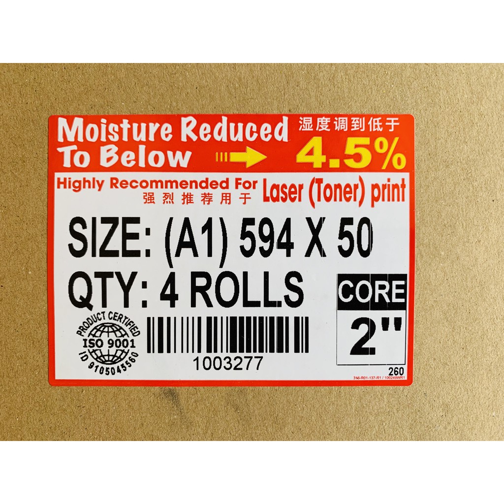 A1 PLAN PRINTING PAPER/PLOTTER ROLL 80GSM 594MM X 50M X 2"CORE(4ROLLS/CTN)
