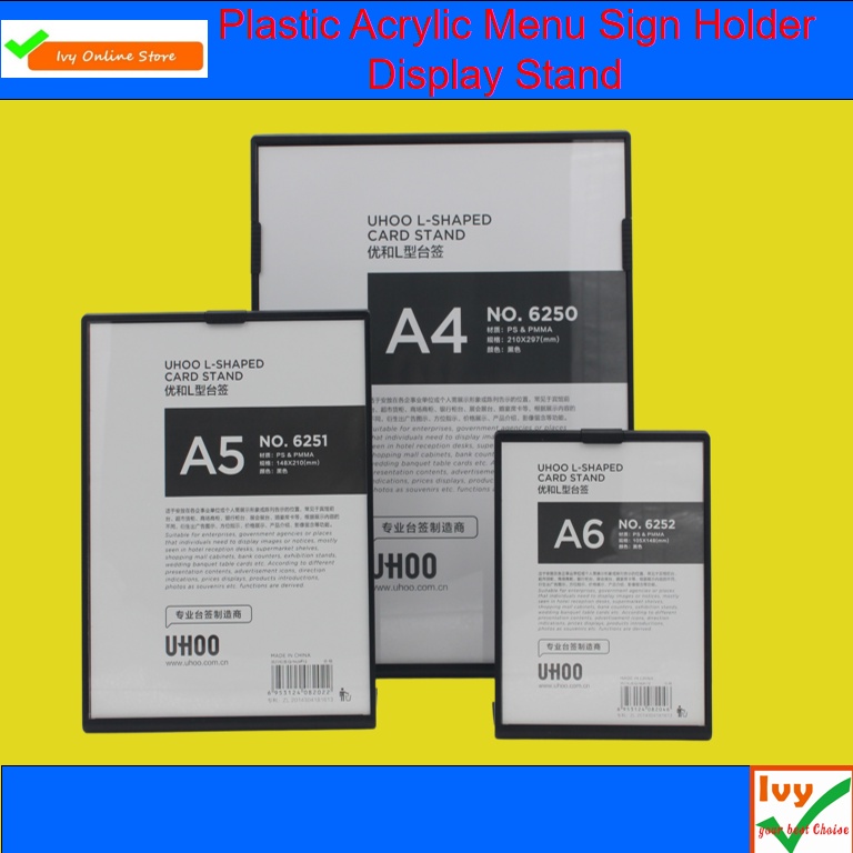 A4 A5 A6 L-Shaped Plastic Acrylic Menu Sign Holder Stand Restaurant Table Card Poster Display Stand Frame