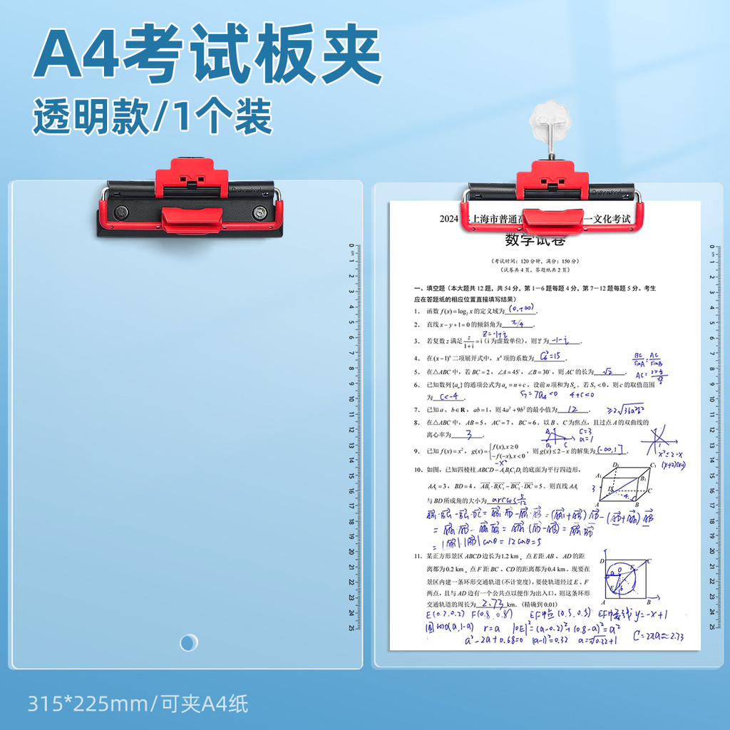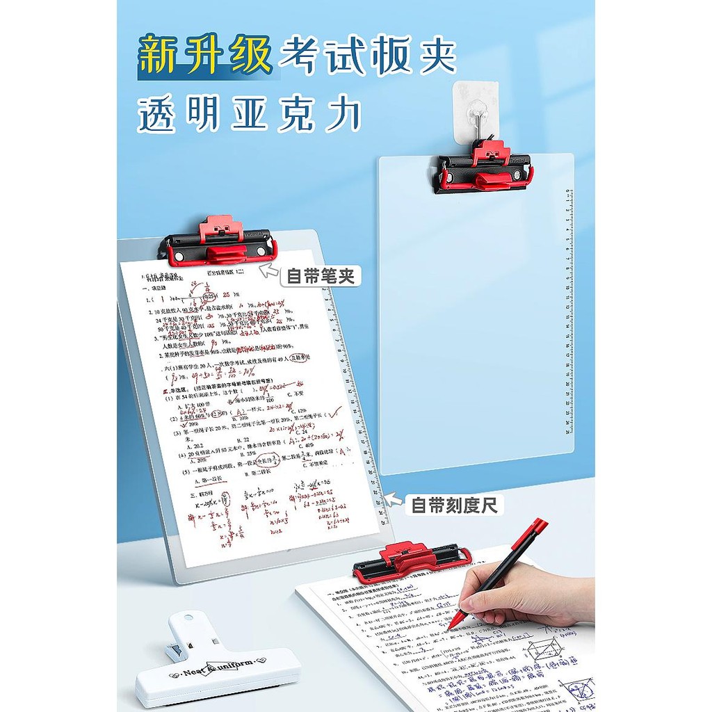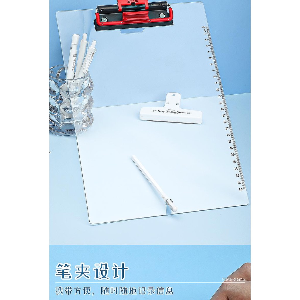 A4 Board Clip Transparent Acrylic Backing Board Thickened Board Clip Student Writing Board Folder Board Stationery Test Paper Exam Writing Book Clip Cute Plastic Multifunctional Data Signature Baffle Office Supplies