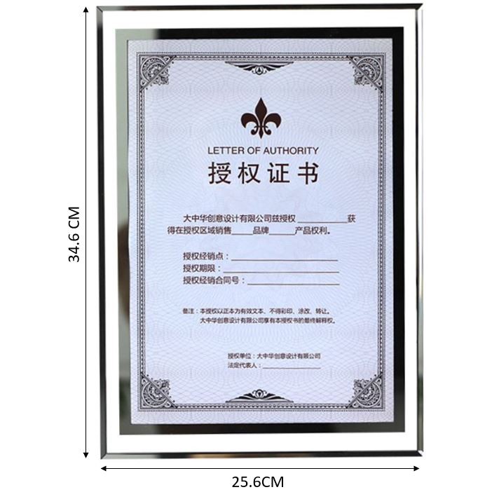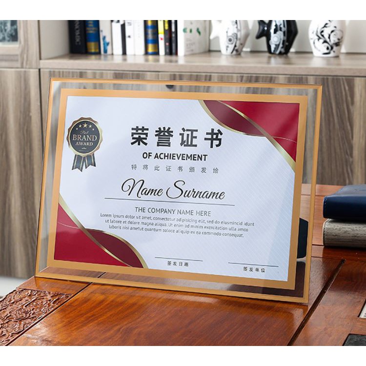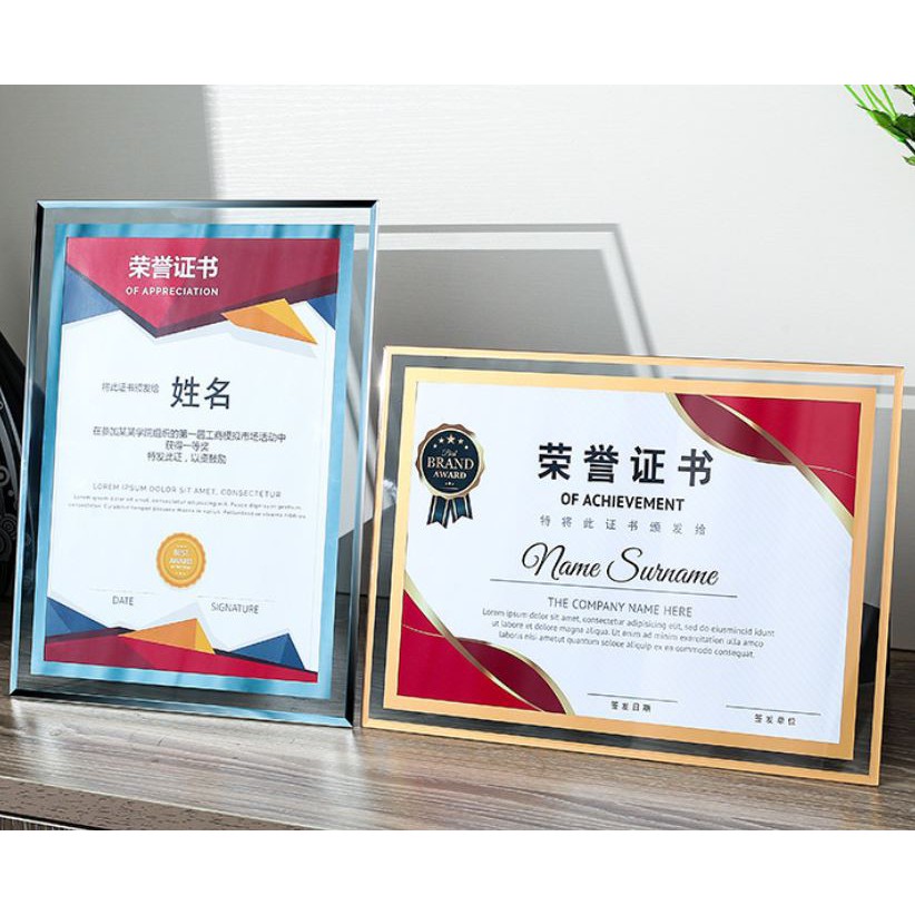 A4 Crystal Glass certificate/Photo frame wall hanging and Standing on Desktop