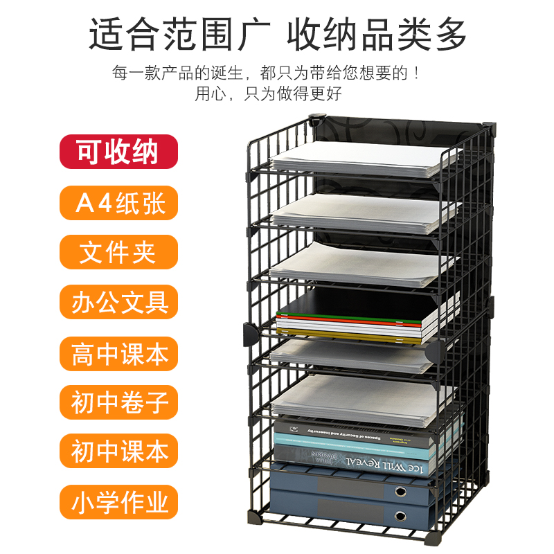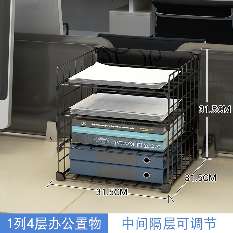 A4 Layered File Shelf Mesh Four Layers Document Shelf Storage Data Bar Basket File BoxDesktop Storage Shelf Office Tray File Shelf Can Be Superimposed with Multi-layer Desktop Arrangement Shelf A4 File Rack