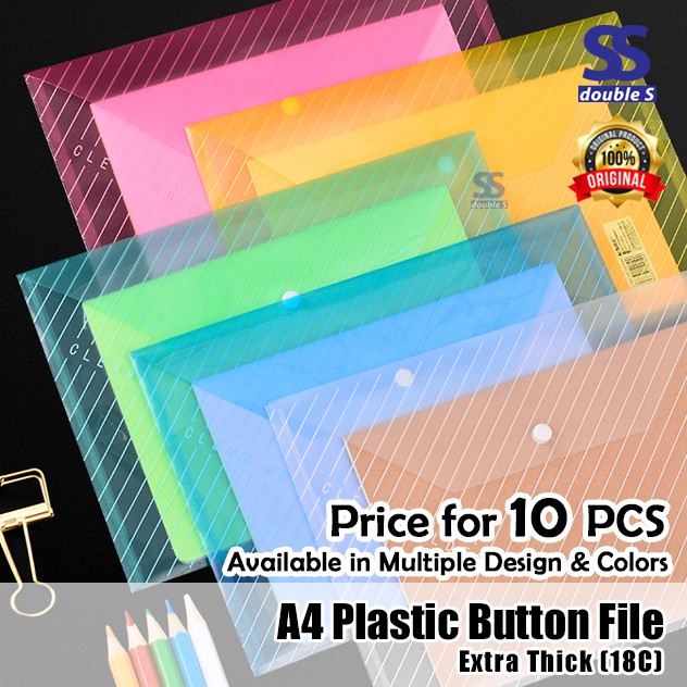 A4 Plastic Button Files 10PCS/Dokumen Folder Plastik A4/Poket Fail Butang A4 10PCS