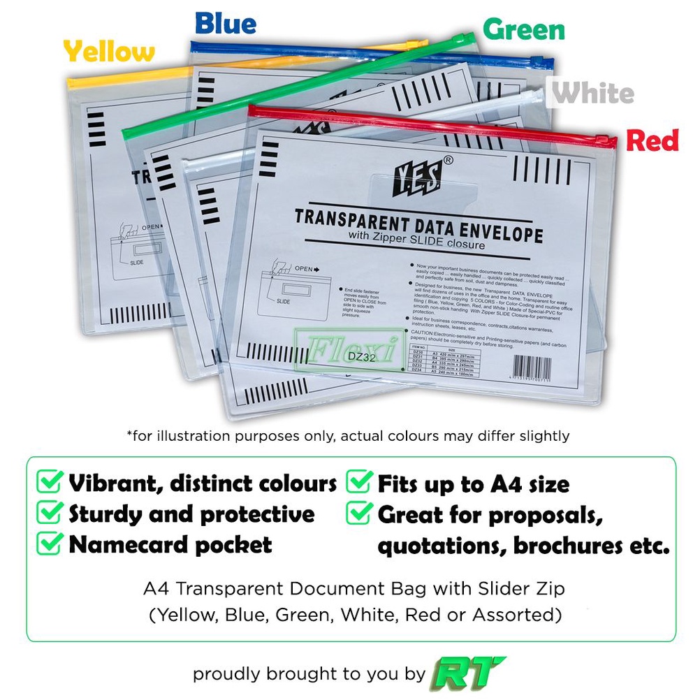 A4 Thick Transparent Clear PVC Zip Data Envelope Folder with External Card Pocket