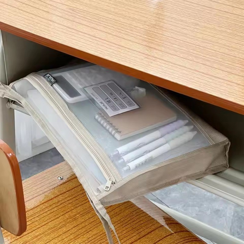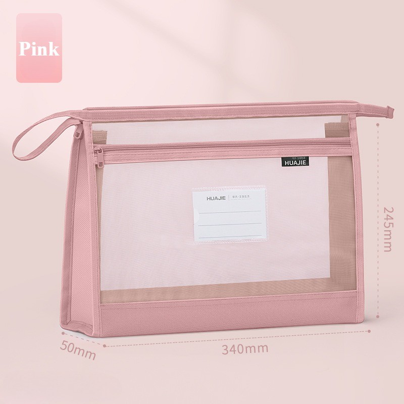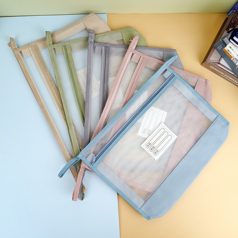 A4 Transparent Mesh Homework Storage Bag Large Capacity Double-layer Mesh Zipper Bag Multifunctional Portable File Folders