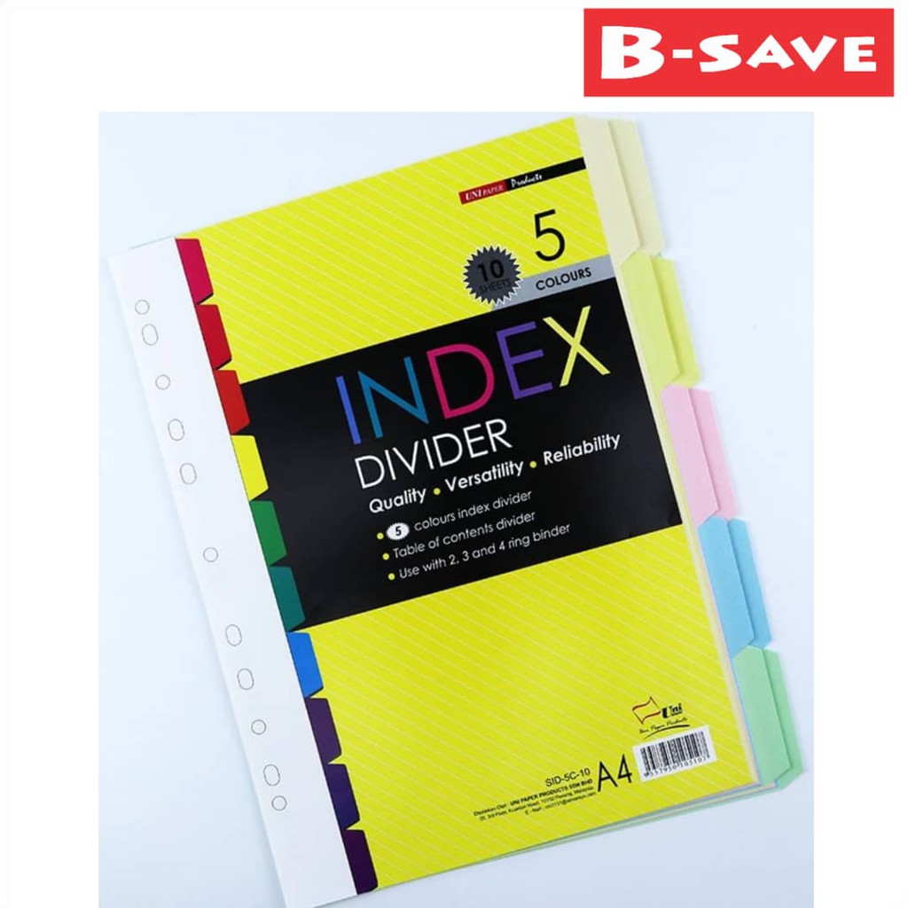 A4 Uni Colour Index Divider / File Filing Separator 5 Colours 10sheets