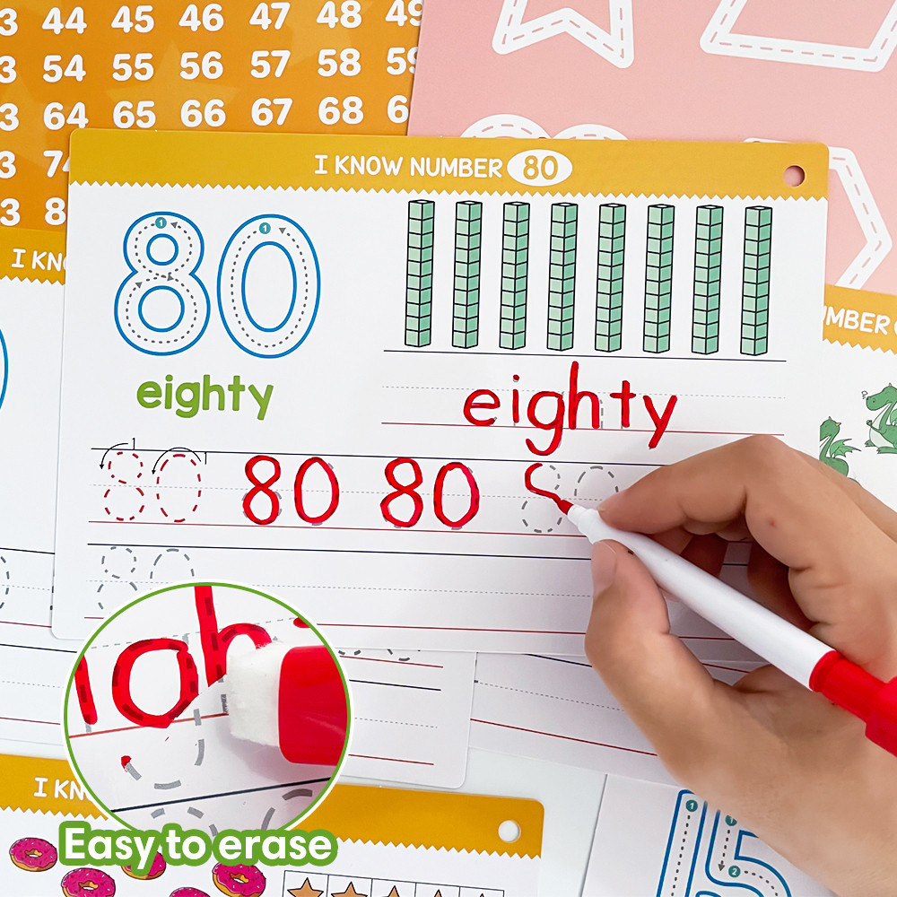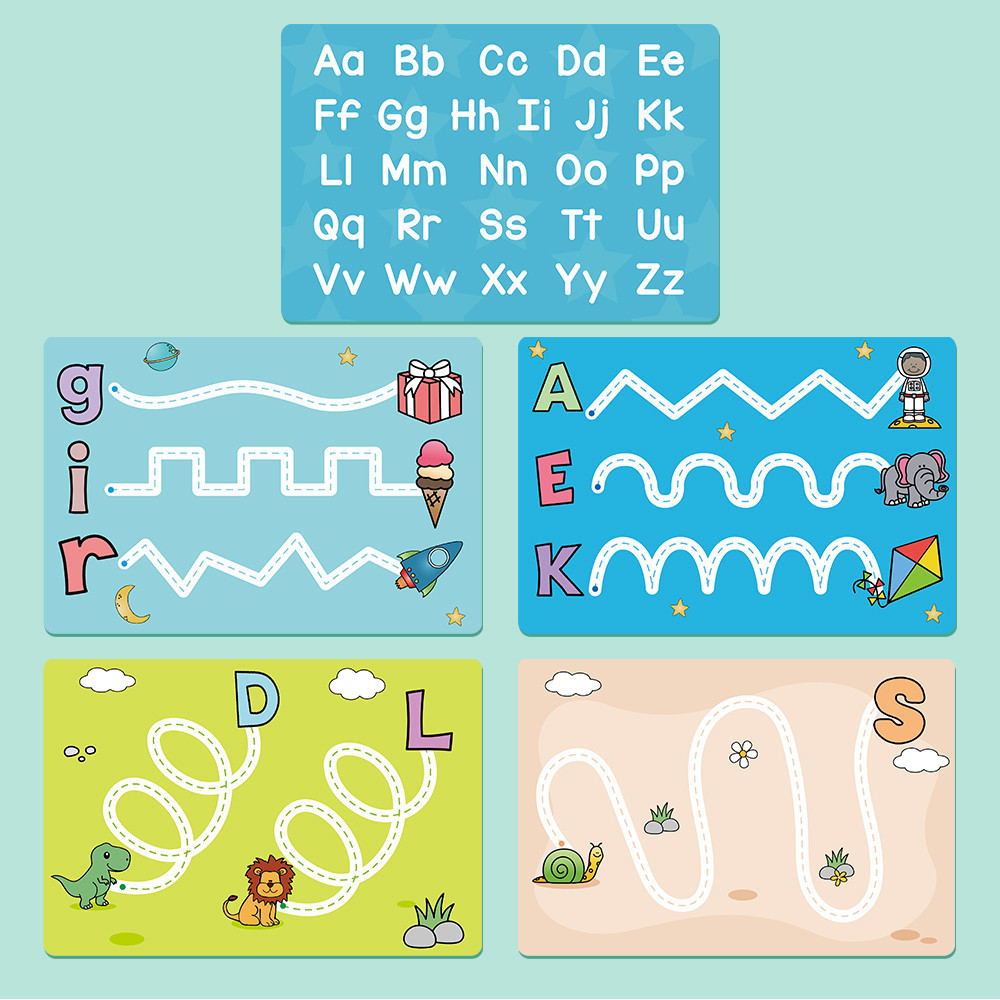 A5 Size Dry Erase Writing English Alphabet Flashcards for Kids Baby Tracing Practice 26 Letters Number Flash Cards Educational Learning Toys Teaching Aids