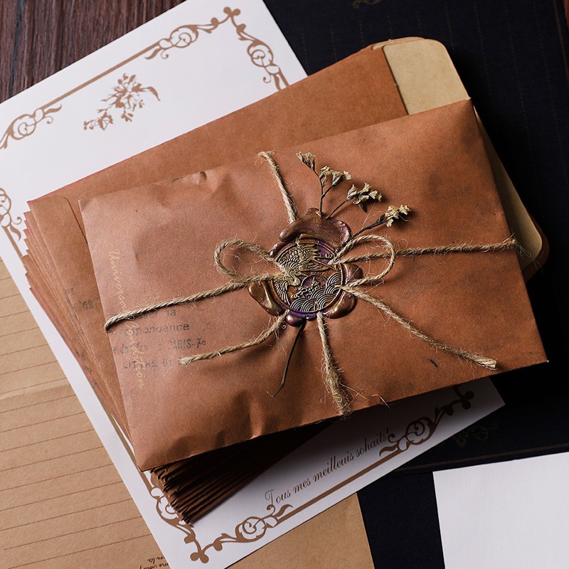 [16x11cm] A6 Vintage Retro Brown Kraftpaper Envelope for Letter, Wax Stamp, Junk Journal
