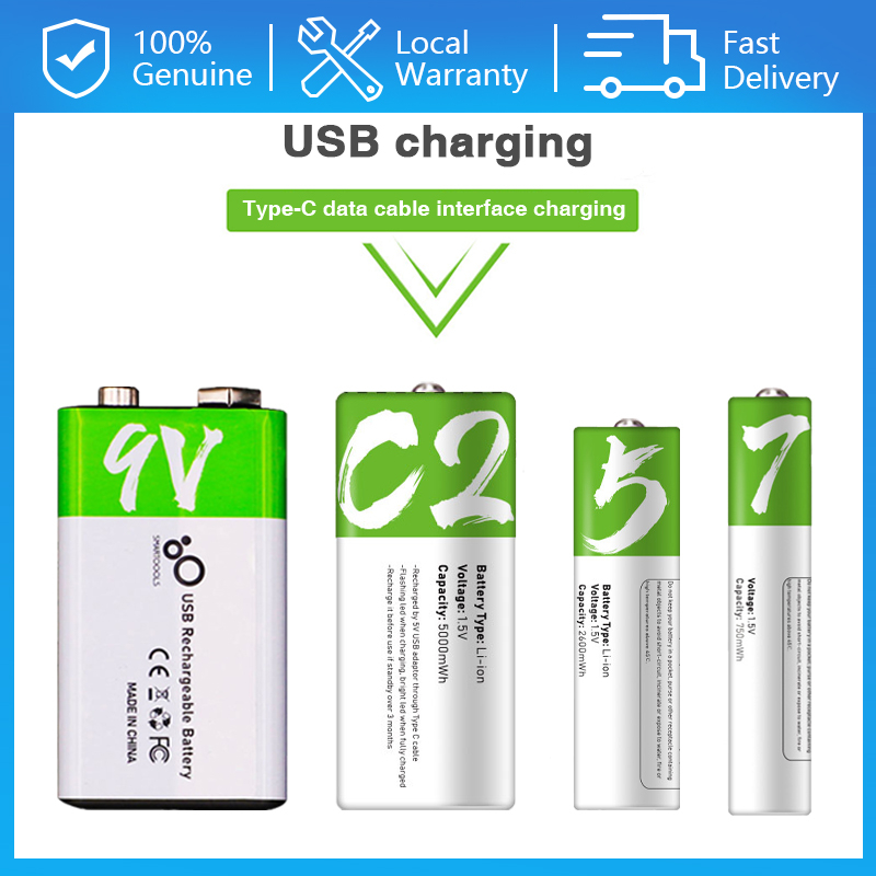 AA AAA C2 9V Rechargeable Battery Multi-purpose USB Rechargeable Lithium Battery SMARTOOLS Large Capacity Battery