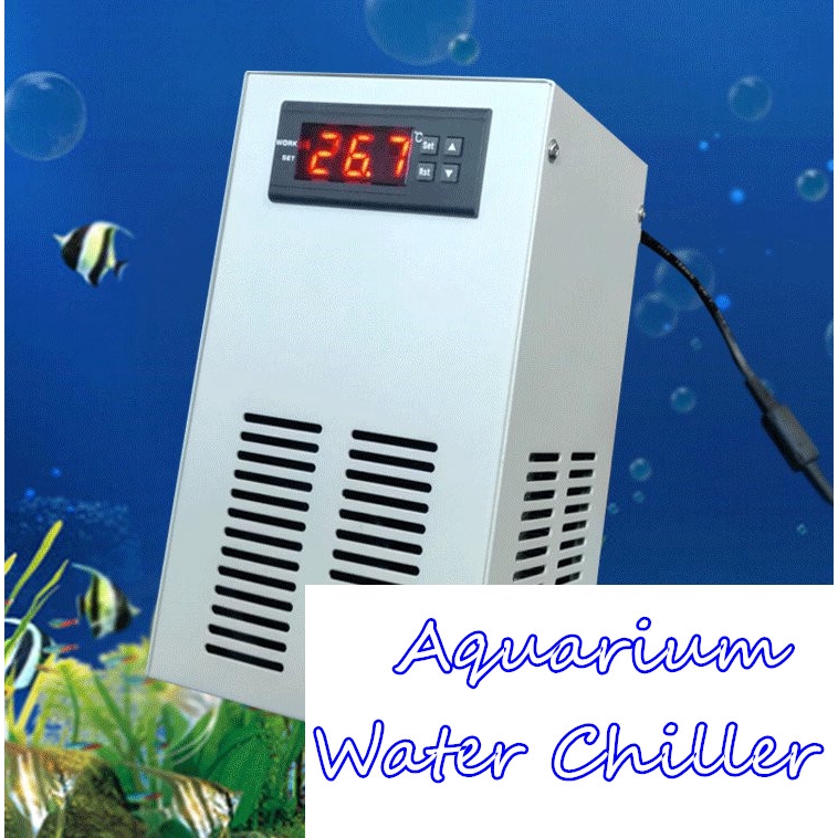 AC 110-240V 35L LCD Display Aquarium Water Chiller Fish Shrimp Tank Cooler Heating Cooling Machine Silver 70W